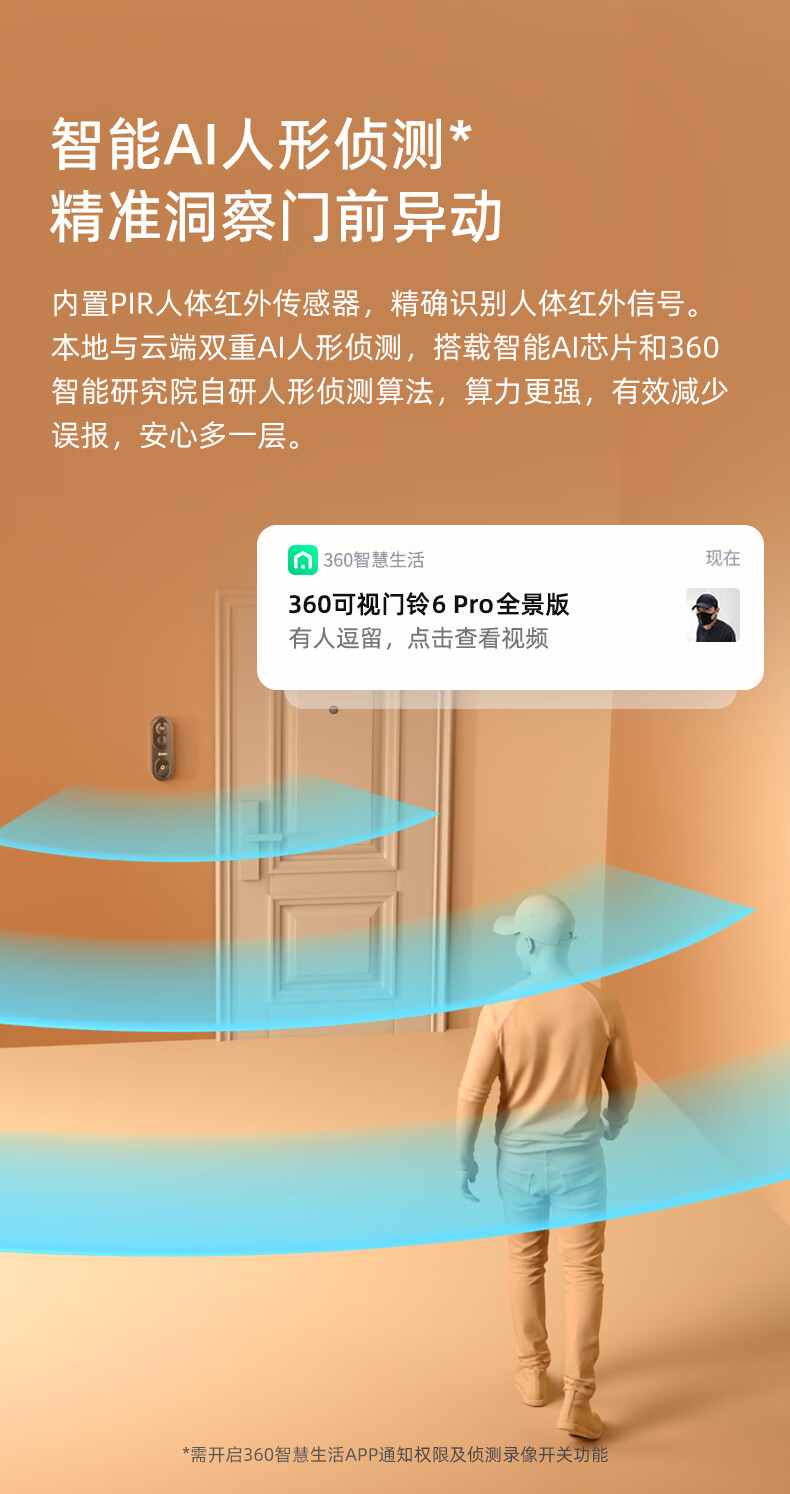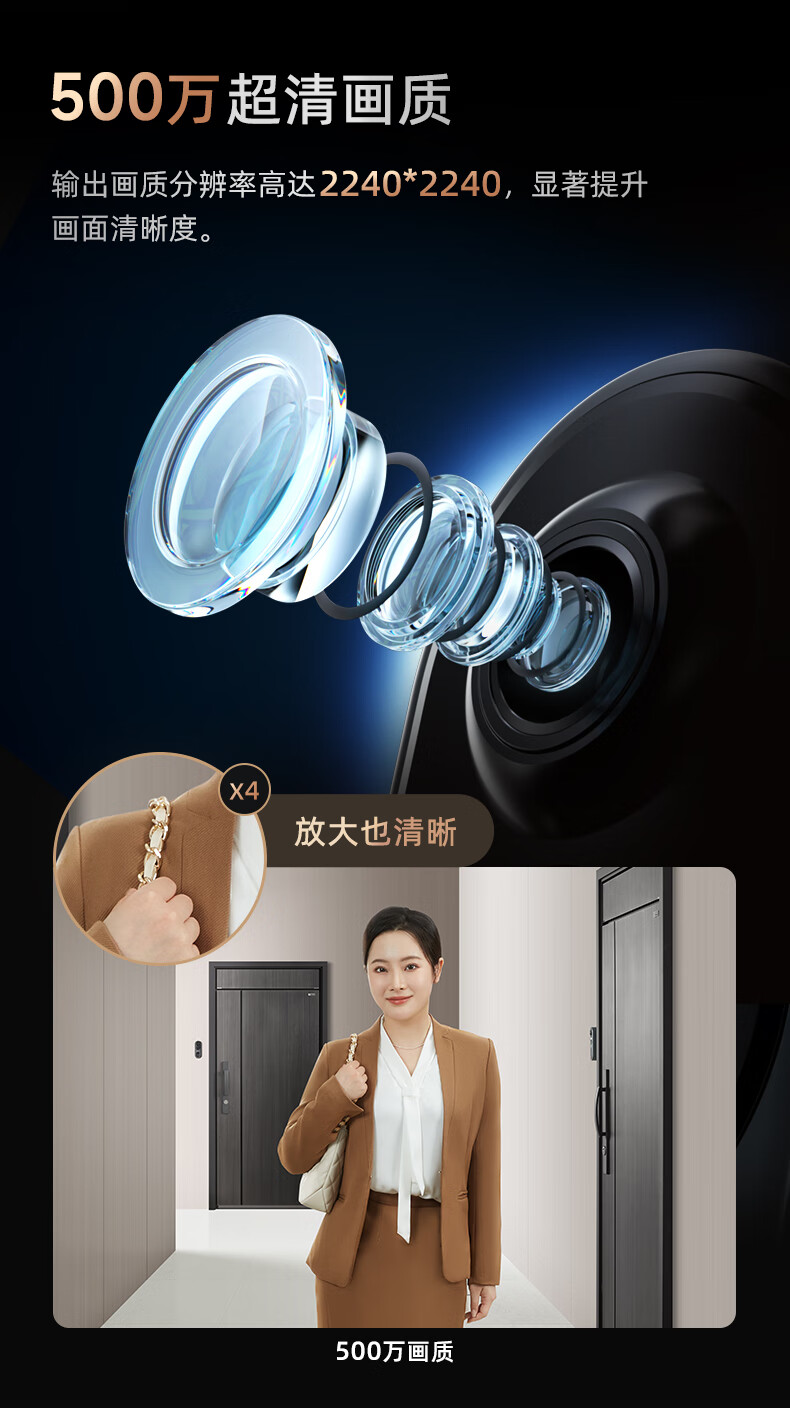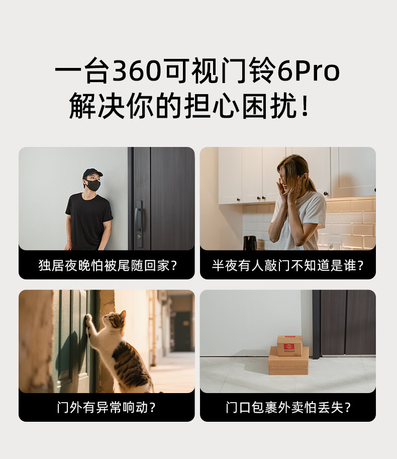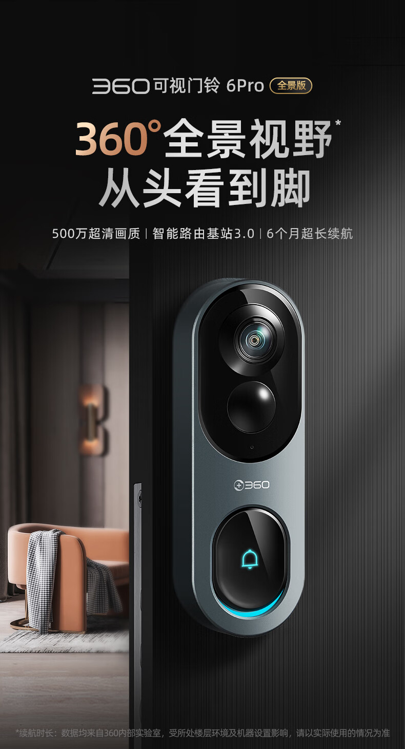 360 6Pro门禁系统 500万超清 智能门铃 电子猫眼摄像头 无线wifi手机远程查看对讲