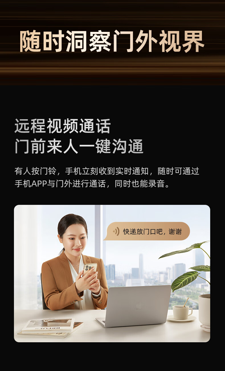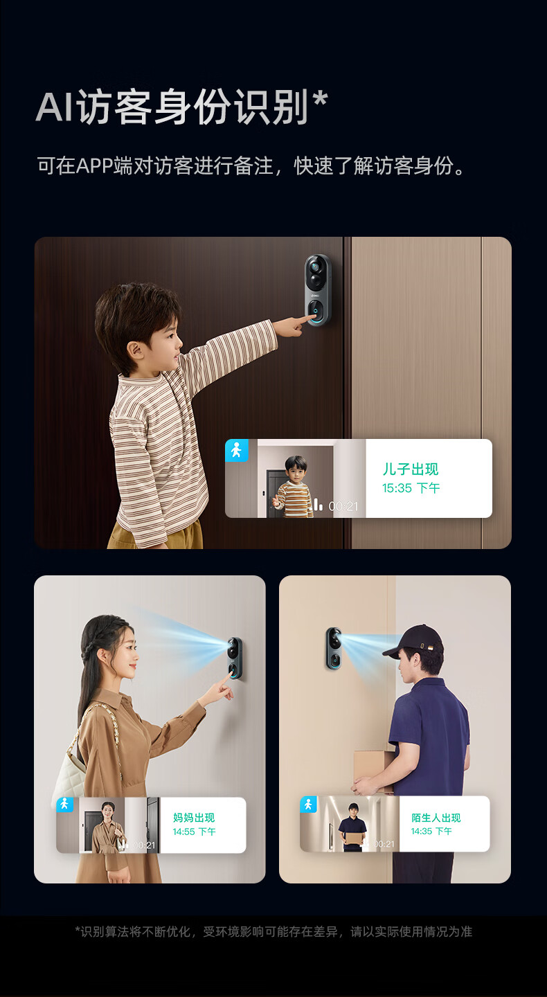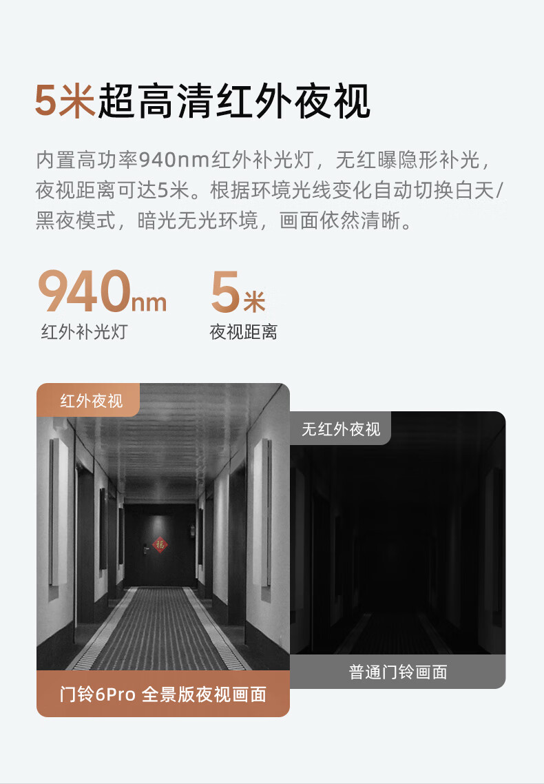 360 6Pro门禁系统 500万超清 智能门铃 电子猫眼摄像头 无线wifi手机远程查看对讲