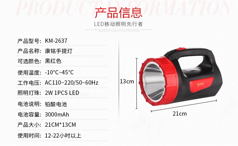 康铭/KANGMING KM-2637N 应急照明灯 2637大容量3000mAh