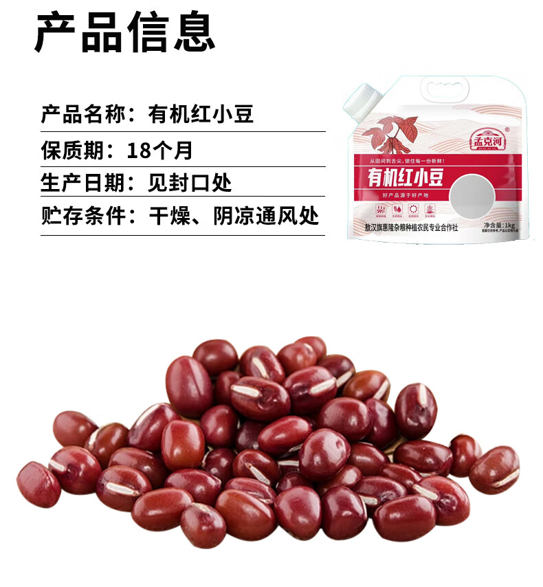 孟克河 1000 红豆 有机红小豆1kg