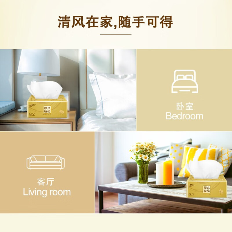 清风 AR44ZSY3 软包抽取式面纸 纸巾A 原木金装系列120抽24包