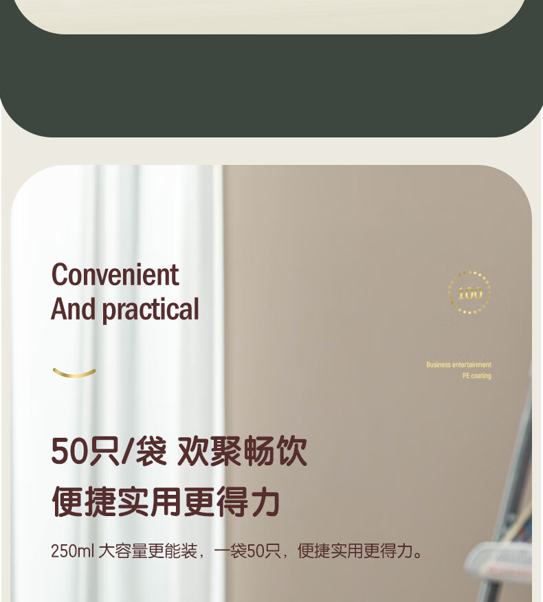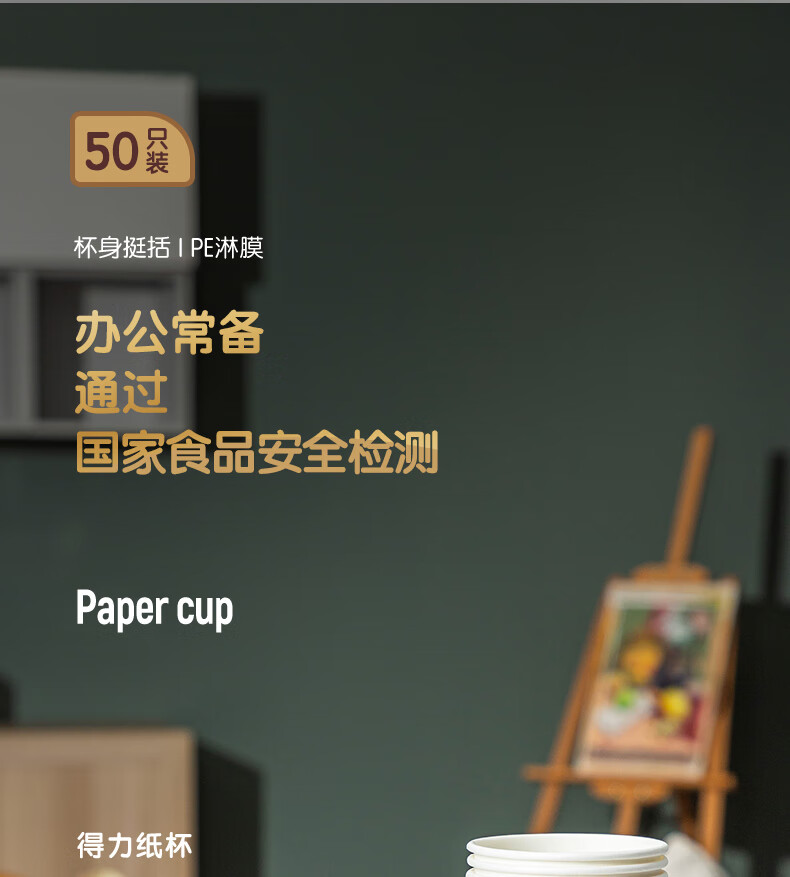 得力/deli 9570 一次性杯子 )250ml(9盎司)加厚一次性杯子 水杯/纸杯 50只装