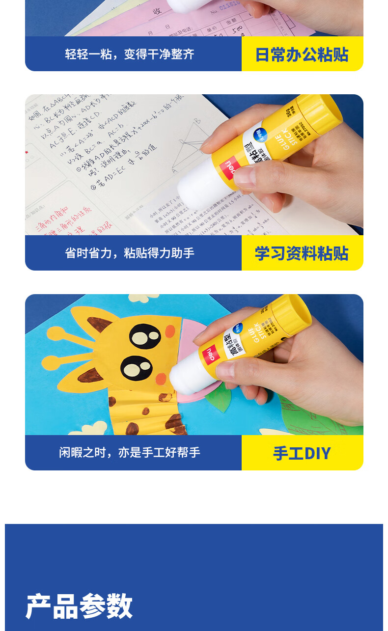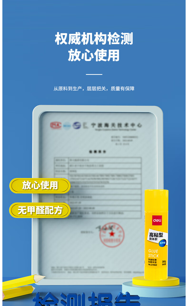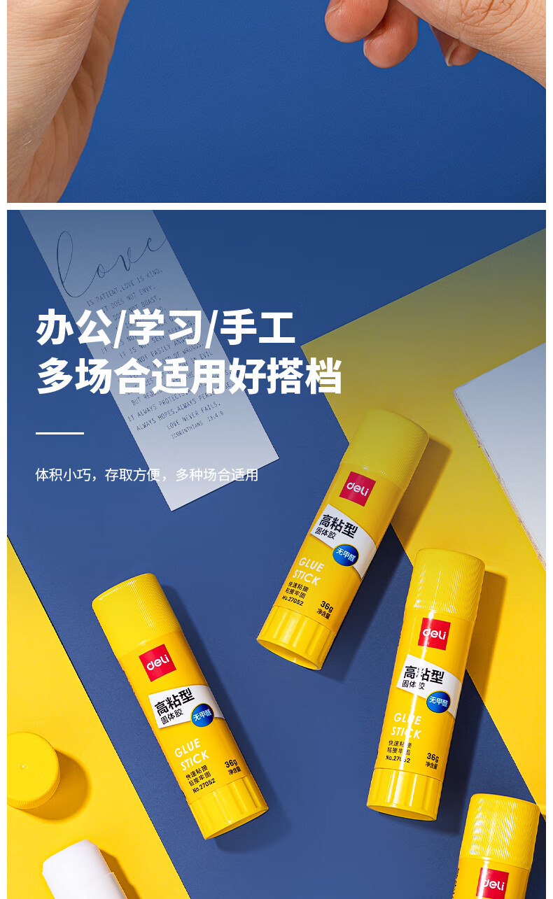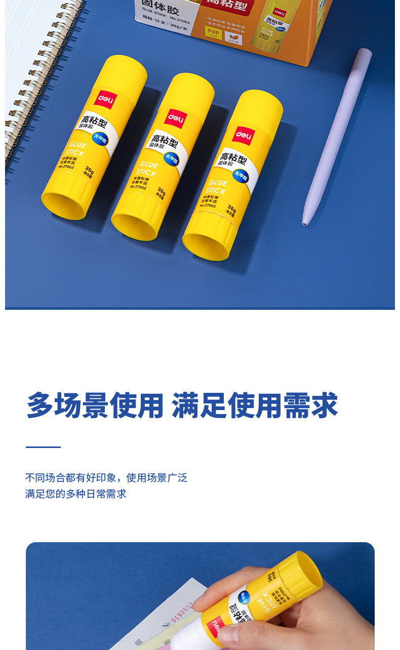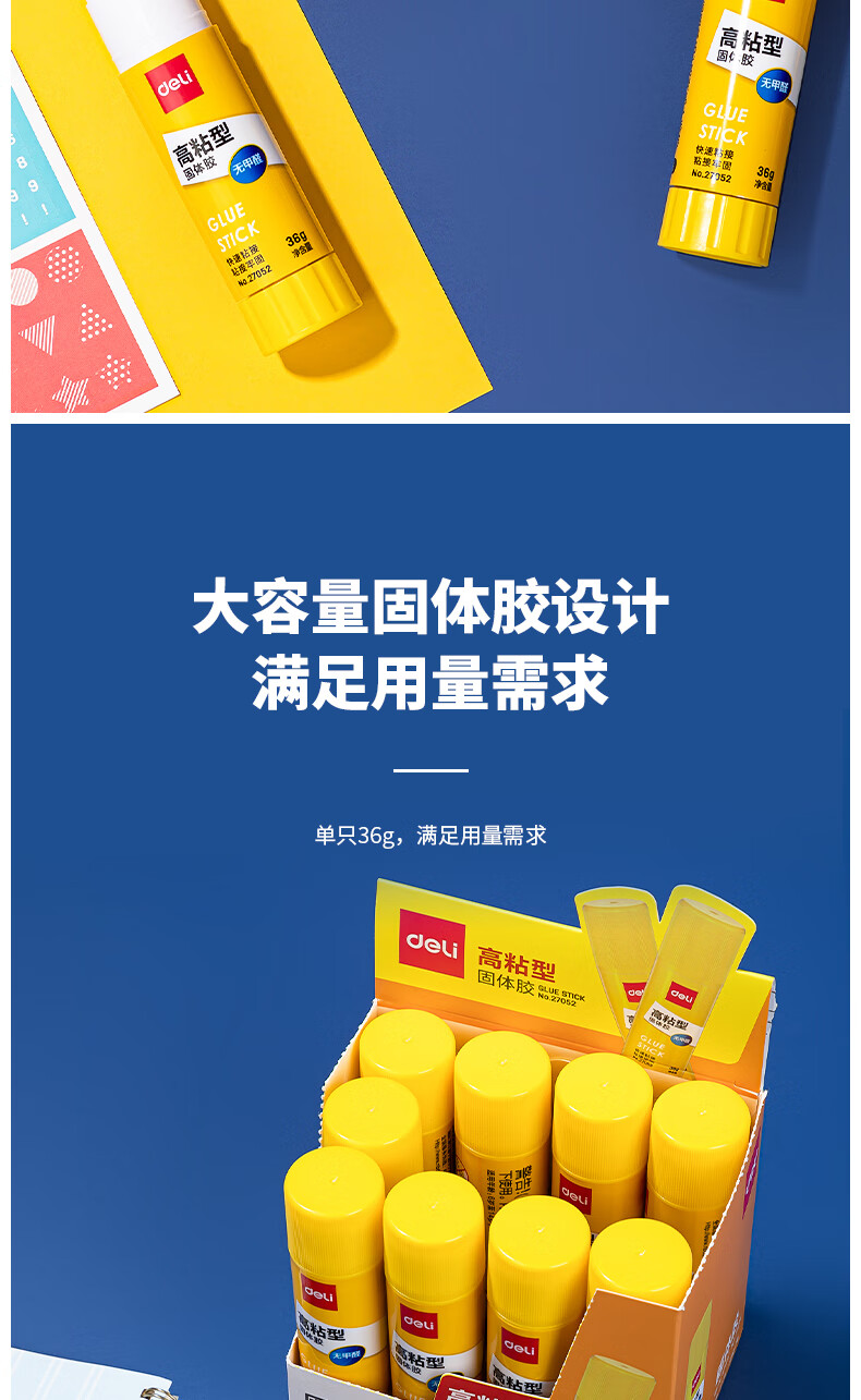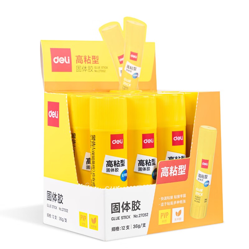 得力/deli 27052 胶棒/固体胶/胶水 36g高粘PVP固体胶水 强力粘接 无甲醛快干耐用胶棒 学生文具 12支