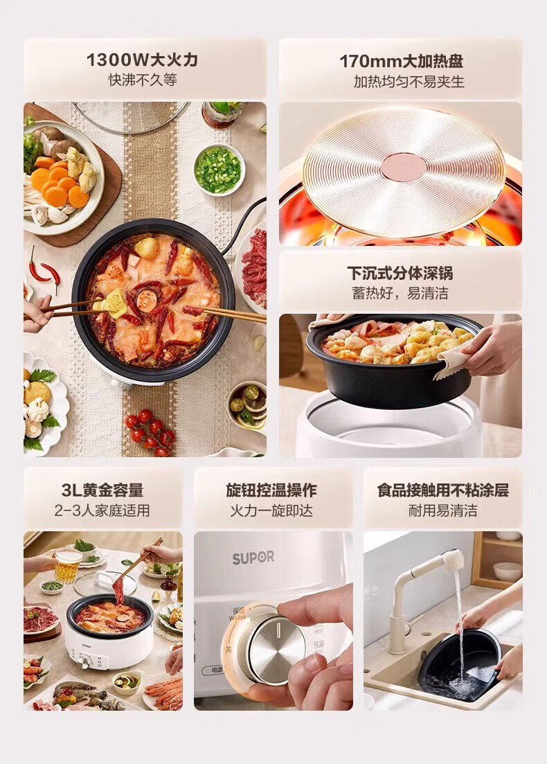 苏泊尔/SUPOR H30YK706 电饭煲/电压力锅 多功能家用电热锅电火锅(分体式