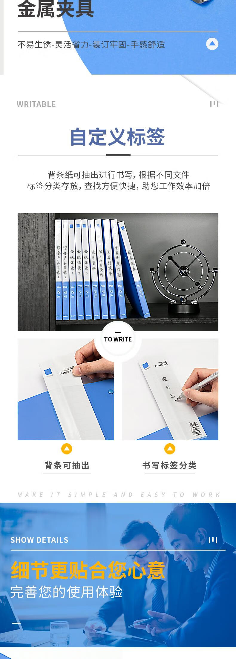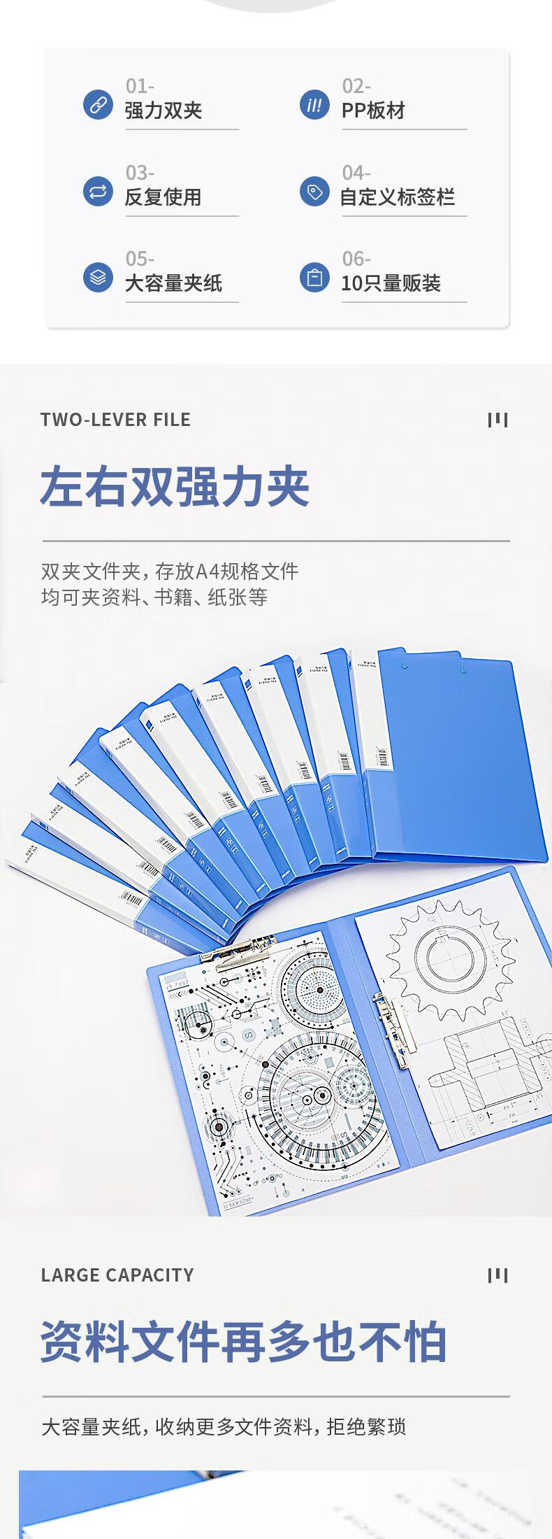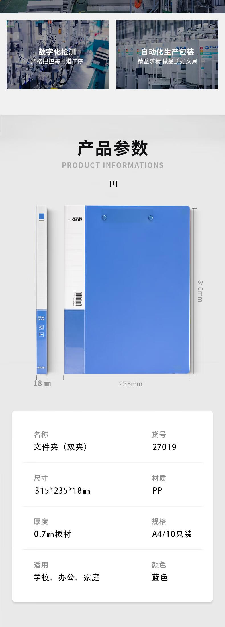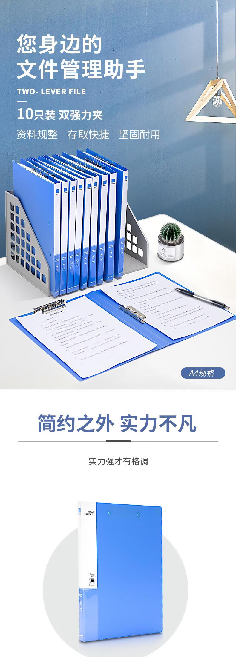 得力/deli 27019 文件夹 10只A4金属双强力夹 票夹硬文件