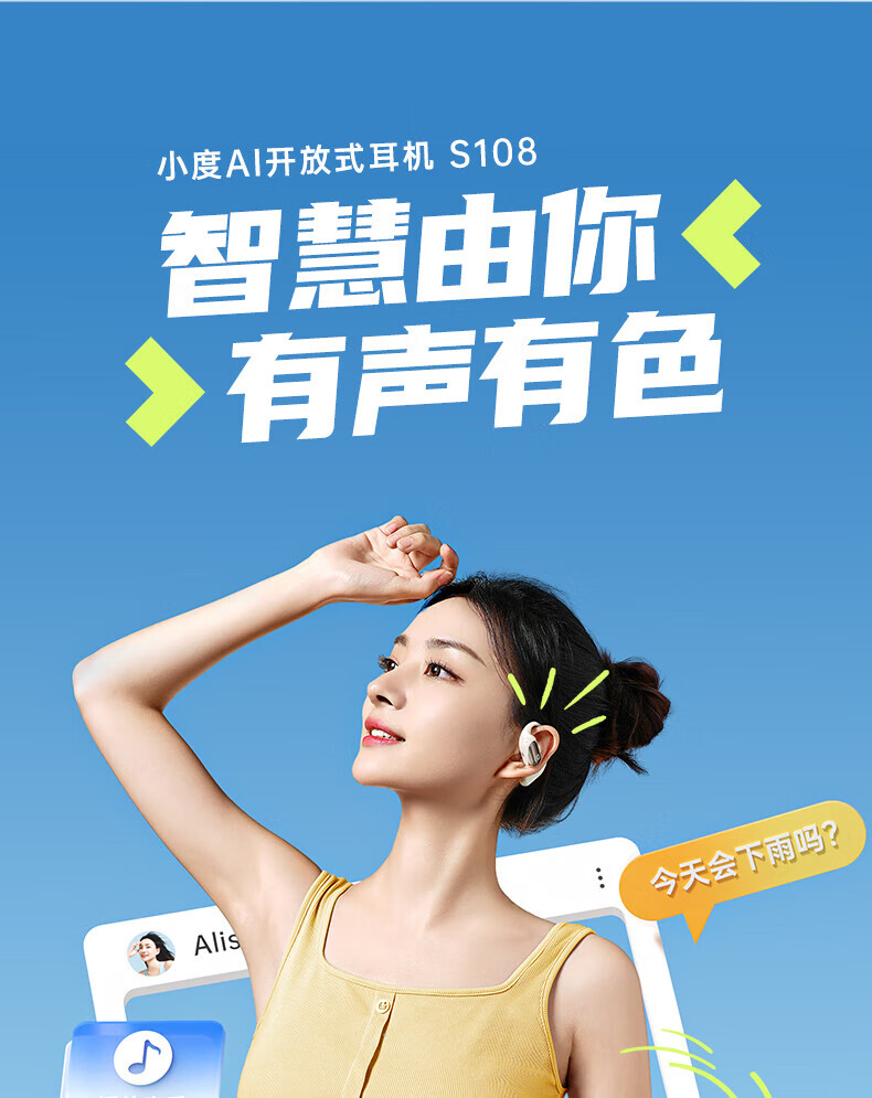 小度 S108 耳机/耳麦 蓝牙耳机骨传导概念挂耳式不入耳运动 白色