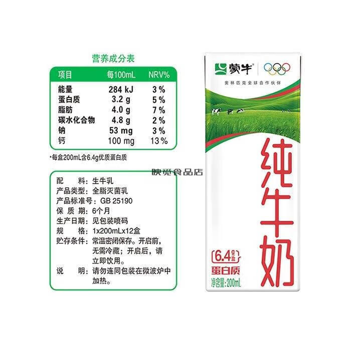 蒙牛/MENGNIU 200ml*12牛奶 蒙牛纯牛奶全脂灭菌乳利乐苗条装200ml×12包