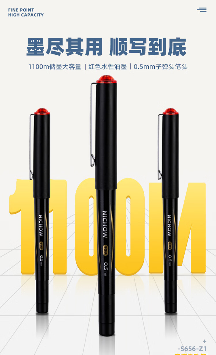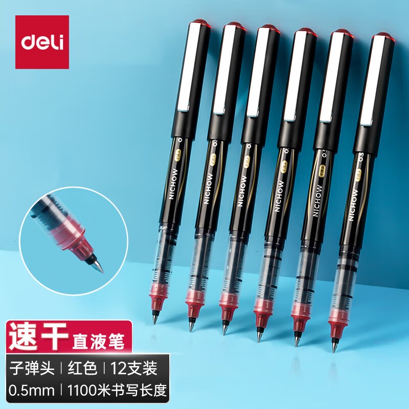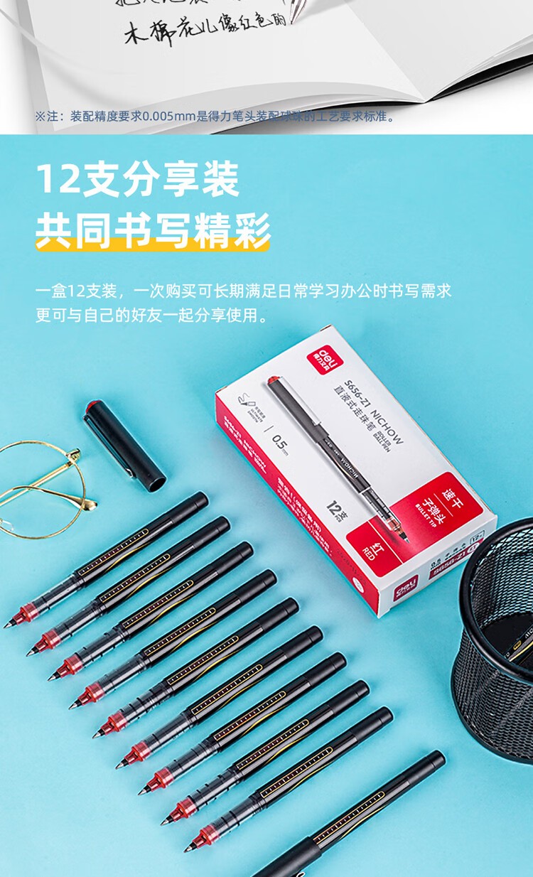 得力/deli S656-Z1 书写用笔类用具 直液笔签字笔 0.5mm子弹头办公商务中性笔 水笔走珠笔 红色 12支/盒