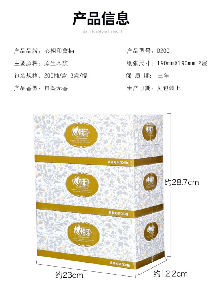心相印/MindActUponMind D200 盒装抽取式面纸 纸卫生纸抽200抽/36盒/整箱