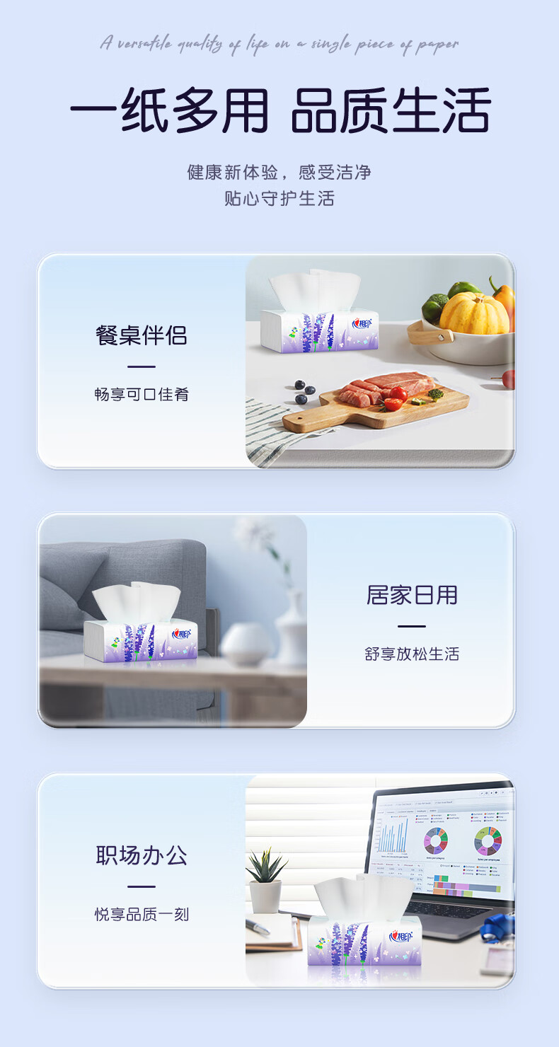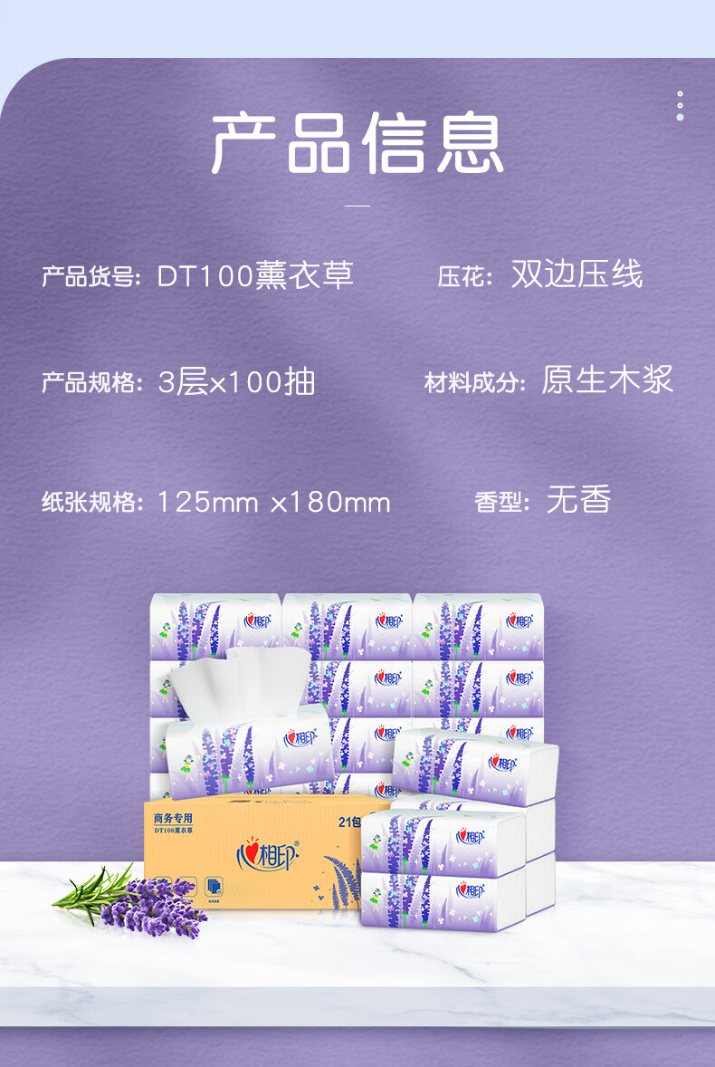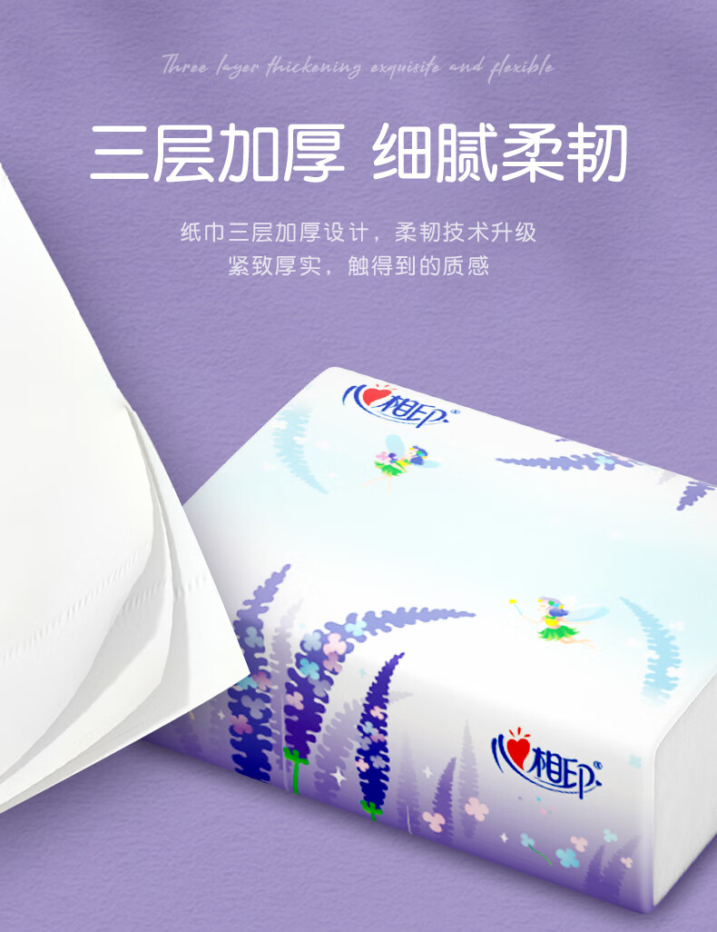 心相印/MindActUponMind DT100 软包抽取式面纸 (薰衣草)三层塑装纸面巾(21包)