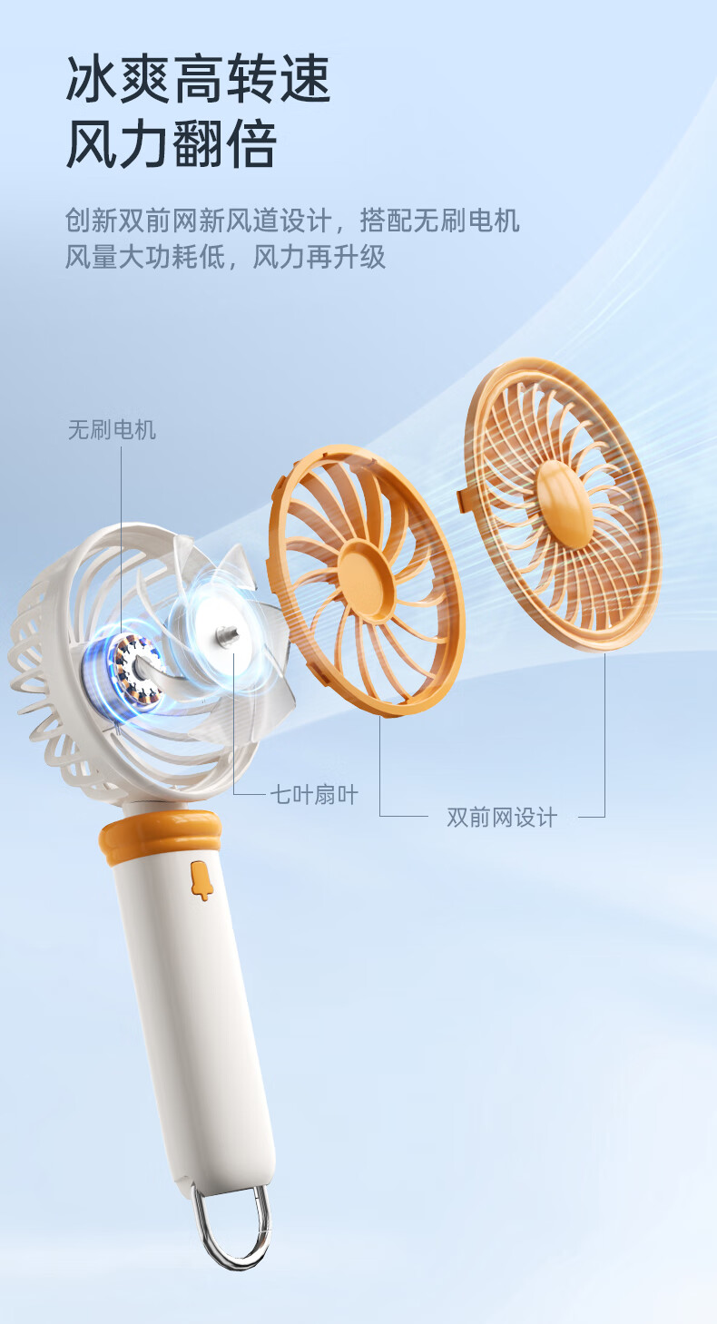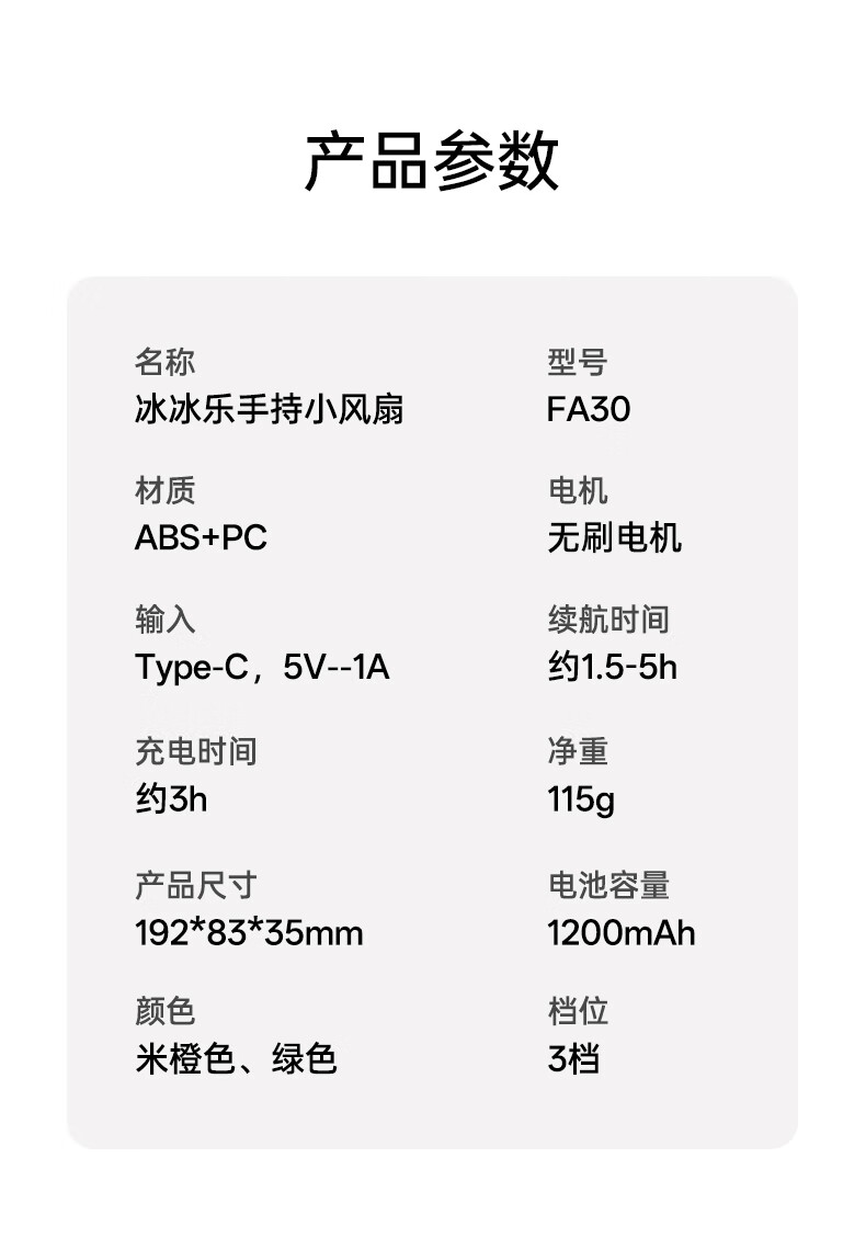 沃品/WOPOW FA30 风扇 便携充电小风扇迷你静音大风力手持高速风扇FA30绿色 300mAh