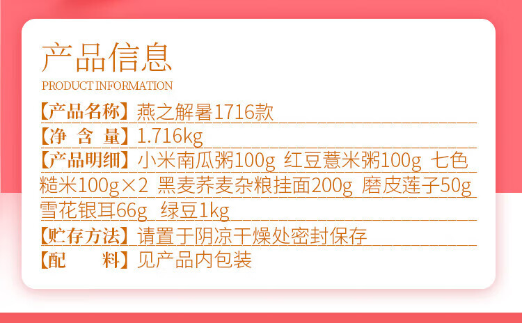 燕之坊 1730 绿豆 燕之解暑1730款礼盒防暑降温绿豆百合莲子