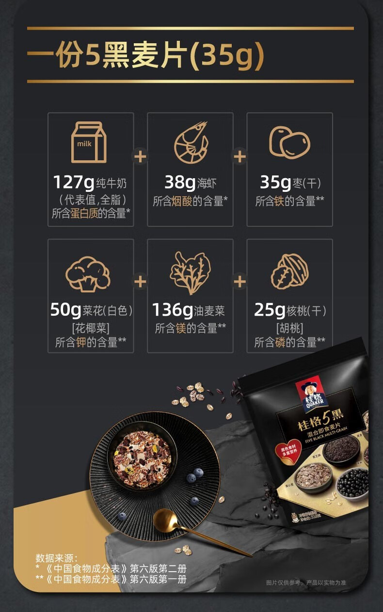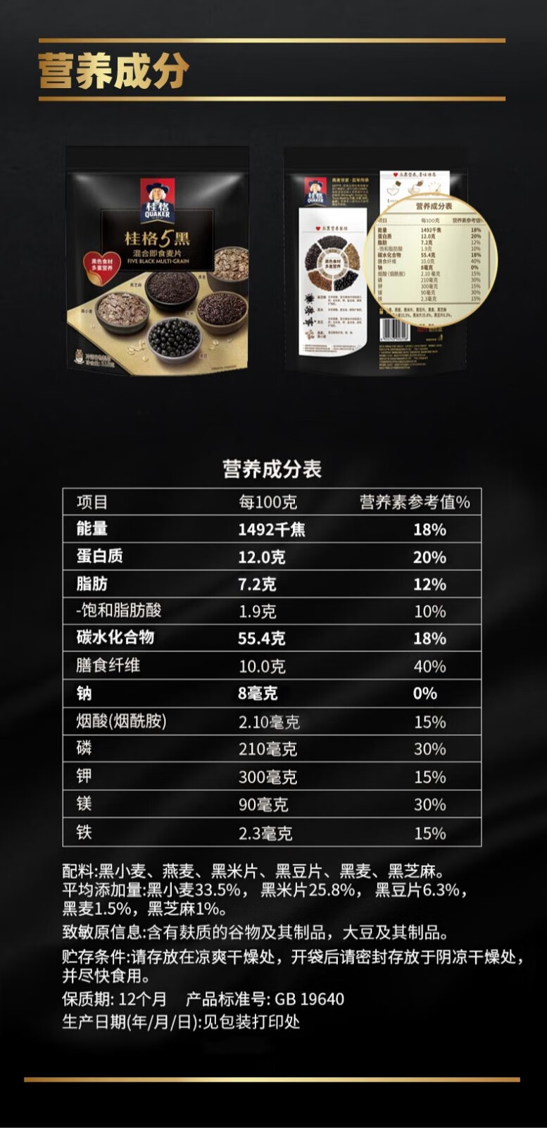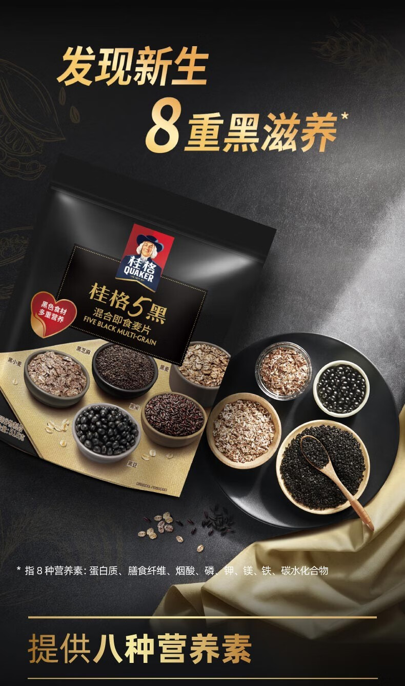 桂格/QUAKER 518 纯燕麦片 桂格5黑燕麦片518克混合冲饮即食五黑即食营养早餐 5黑即食麦片*2袋