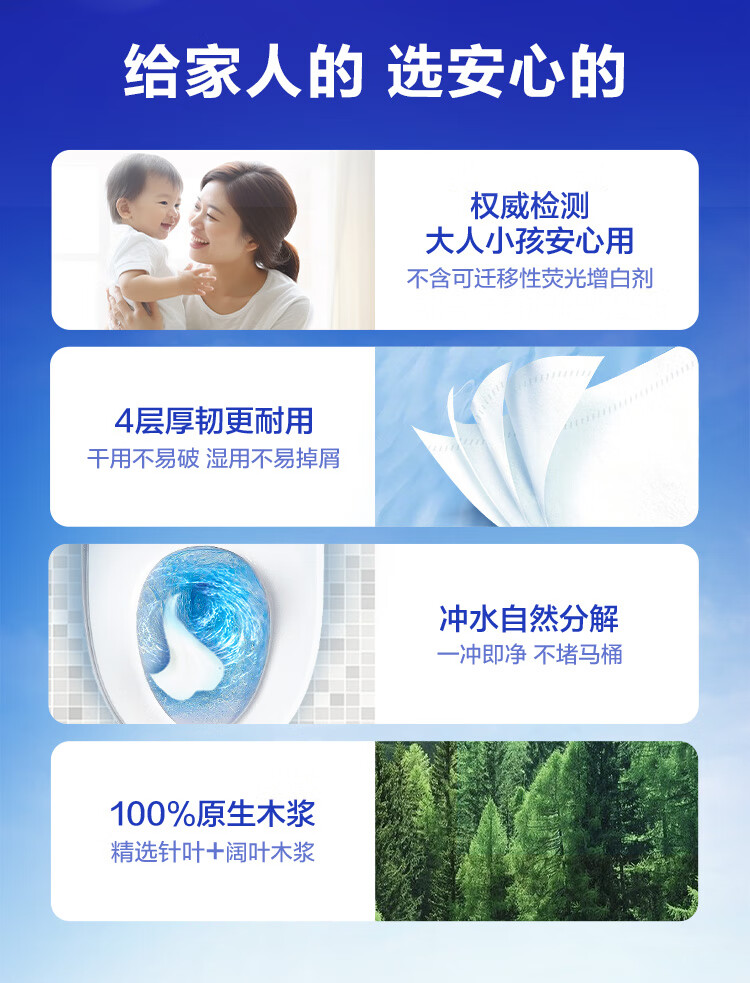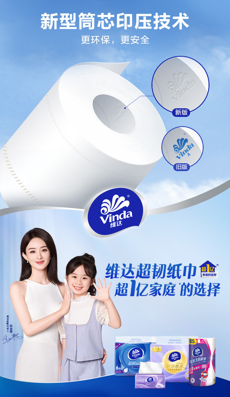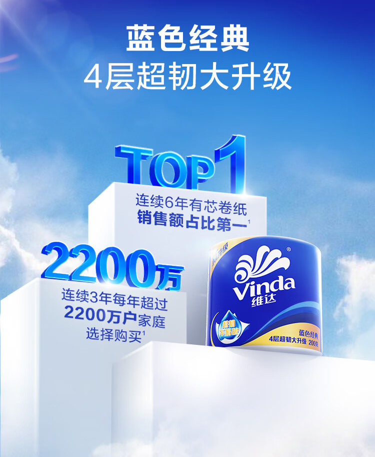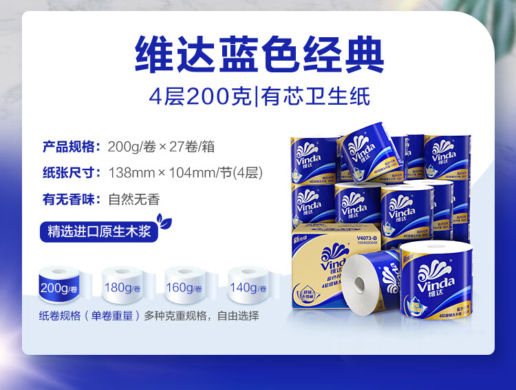维达/Vinda V4073-B 卷类卫生纸 蓝色经典卷纸 200克4层27卷