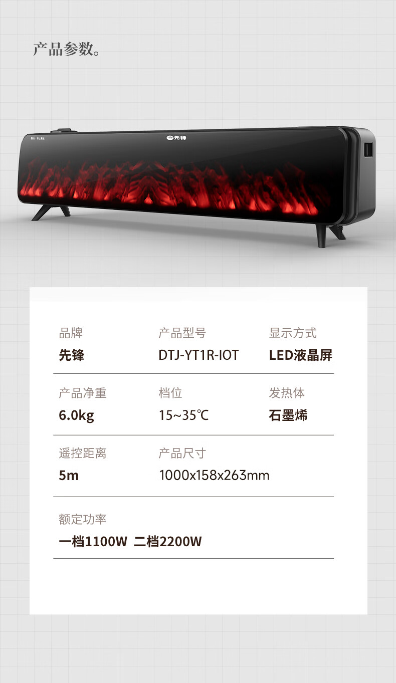 先锋 DTJ-YT1R-IOT取暖器 5D火焰加湿旗舰款