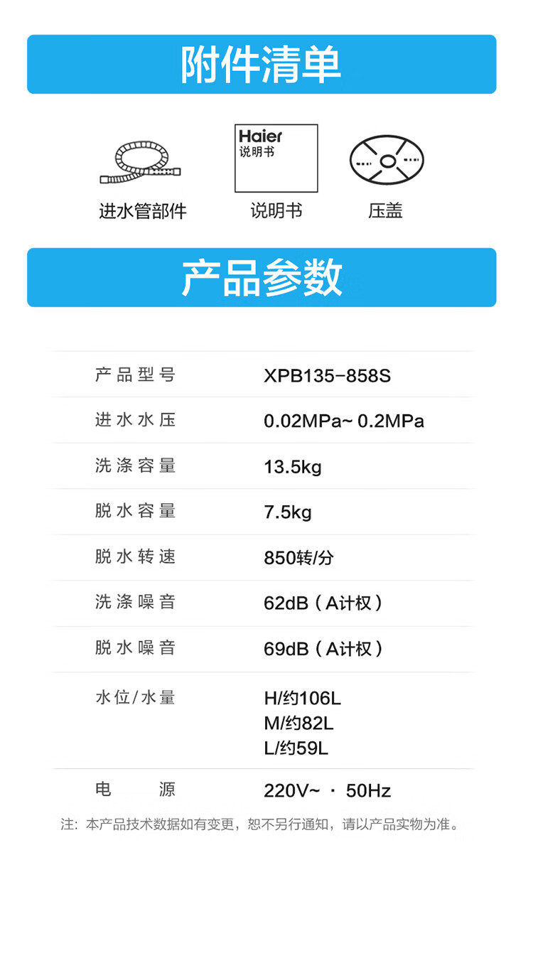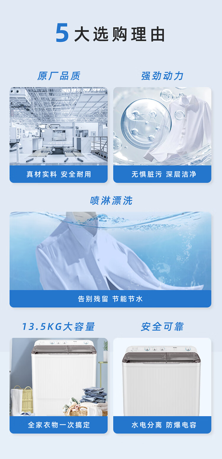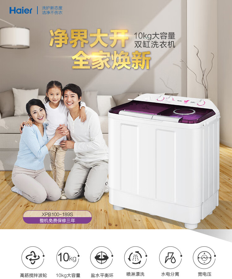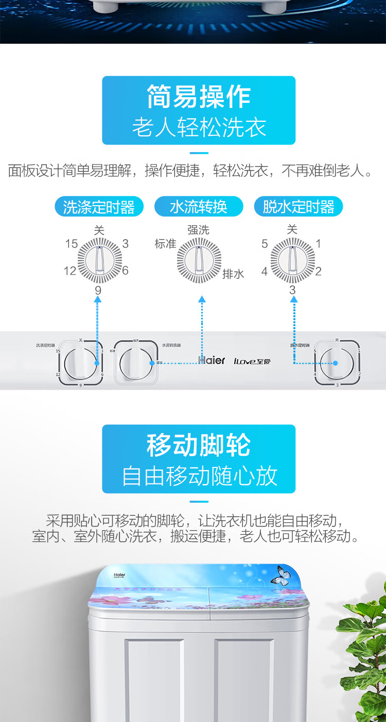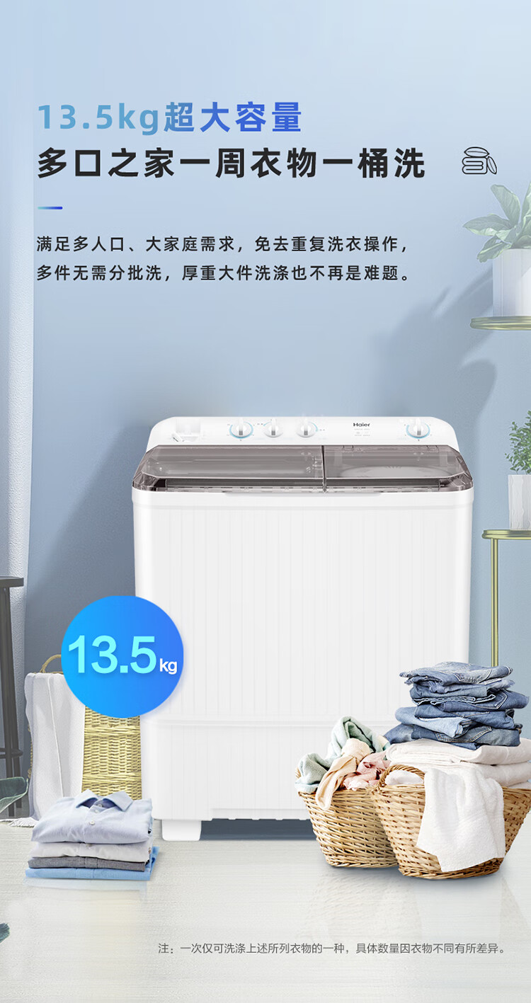 海尔/Haier XPB120-628$ 洗衣机 大容量半自动双缸洗衣机