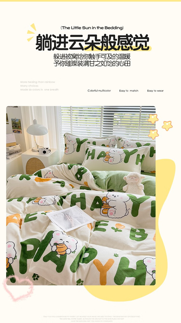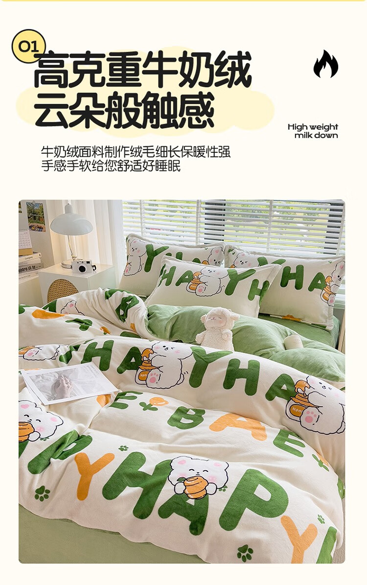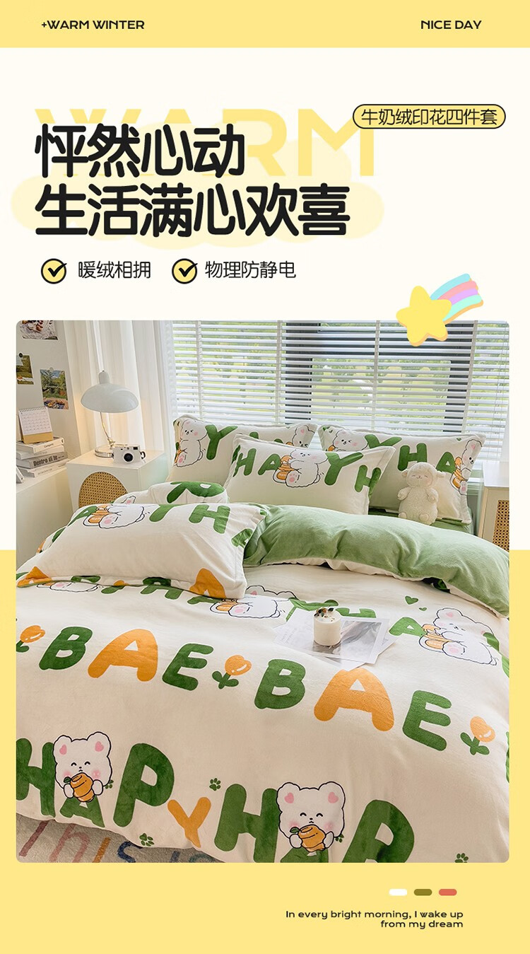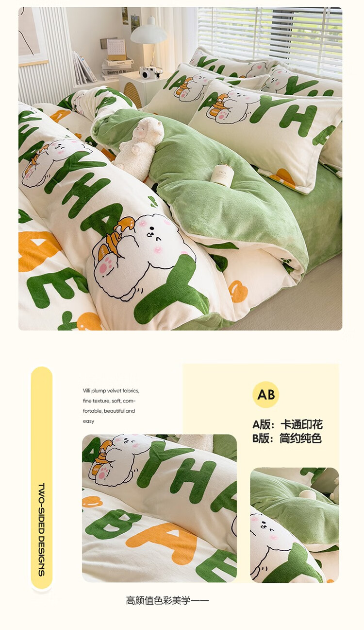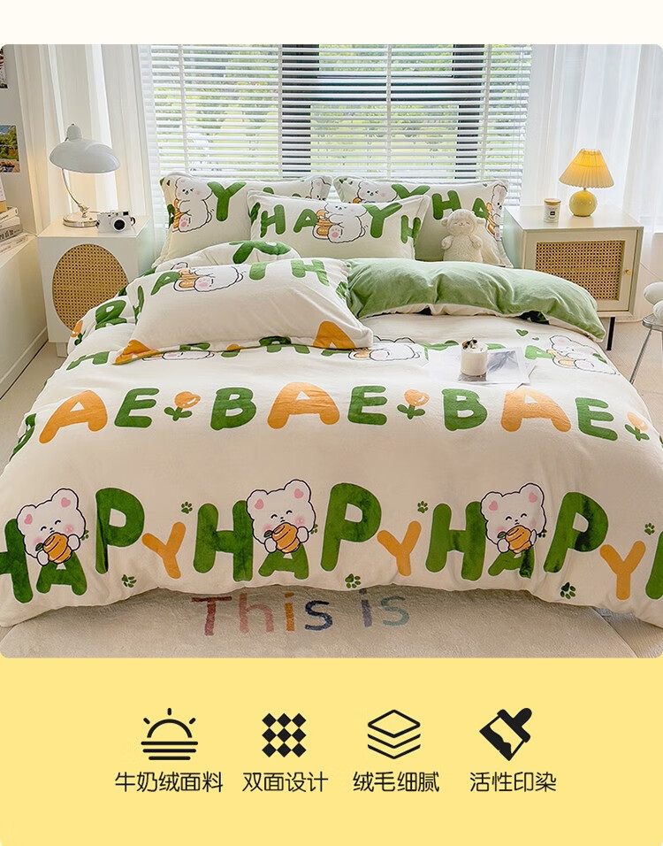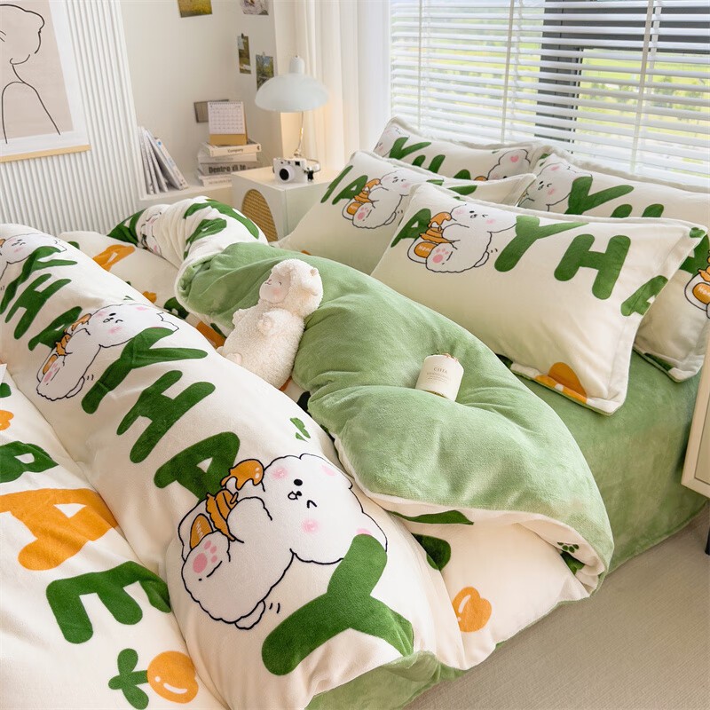 啄木鸟 ZMN-NNR005 被子/被单 牛奶绒四件套-字母兔子