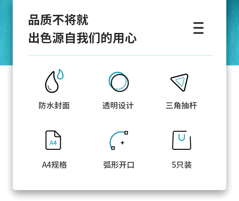 得力/deli 5532 文件夹 5只A4加宽加厚14mm拉杆夹 透明抽杆文