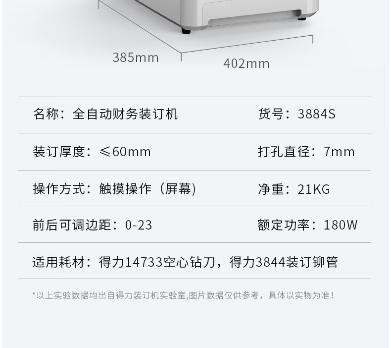 得力/deli 3884S 装订机 60mm会计凭证全自动装订机600页财务装订机电动打孔装