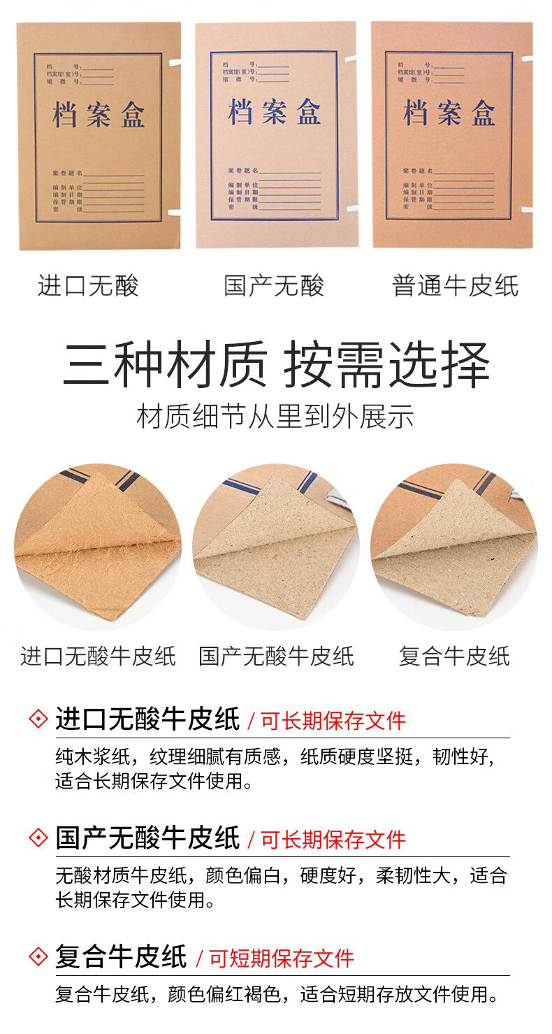 齐心/QIXIN 5cm 文件夹 5cmA4档案盒牛皮纸高质感加厚纸质厚文件资料盒 3105
