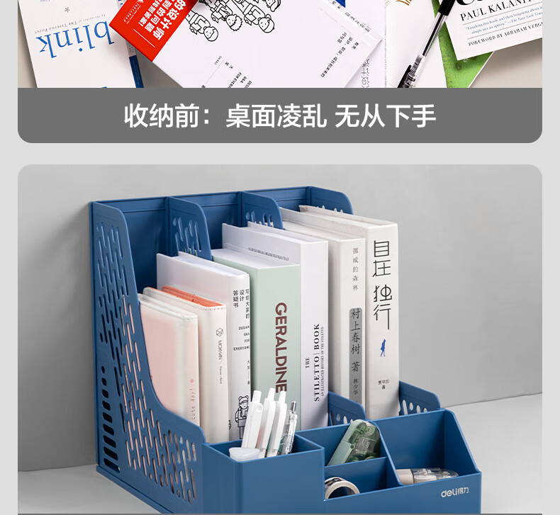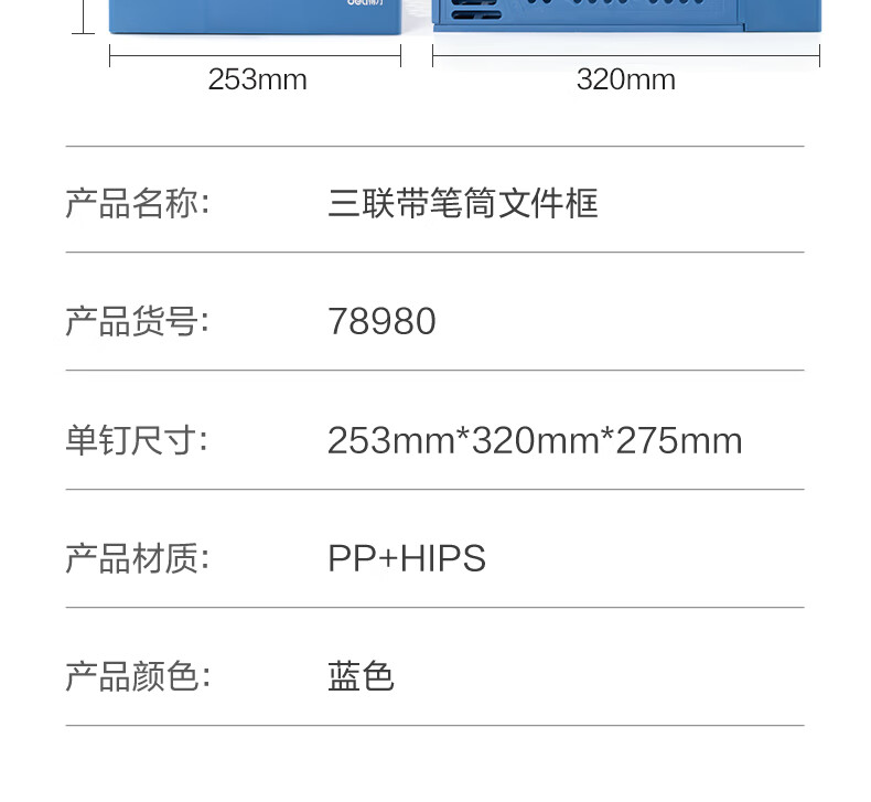 得力/deli 78980 文件筐 三联带笔筒收纳桌面文件框