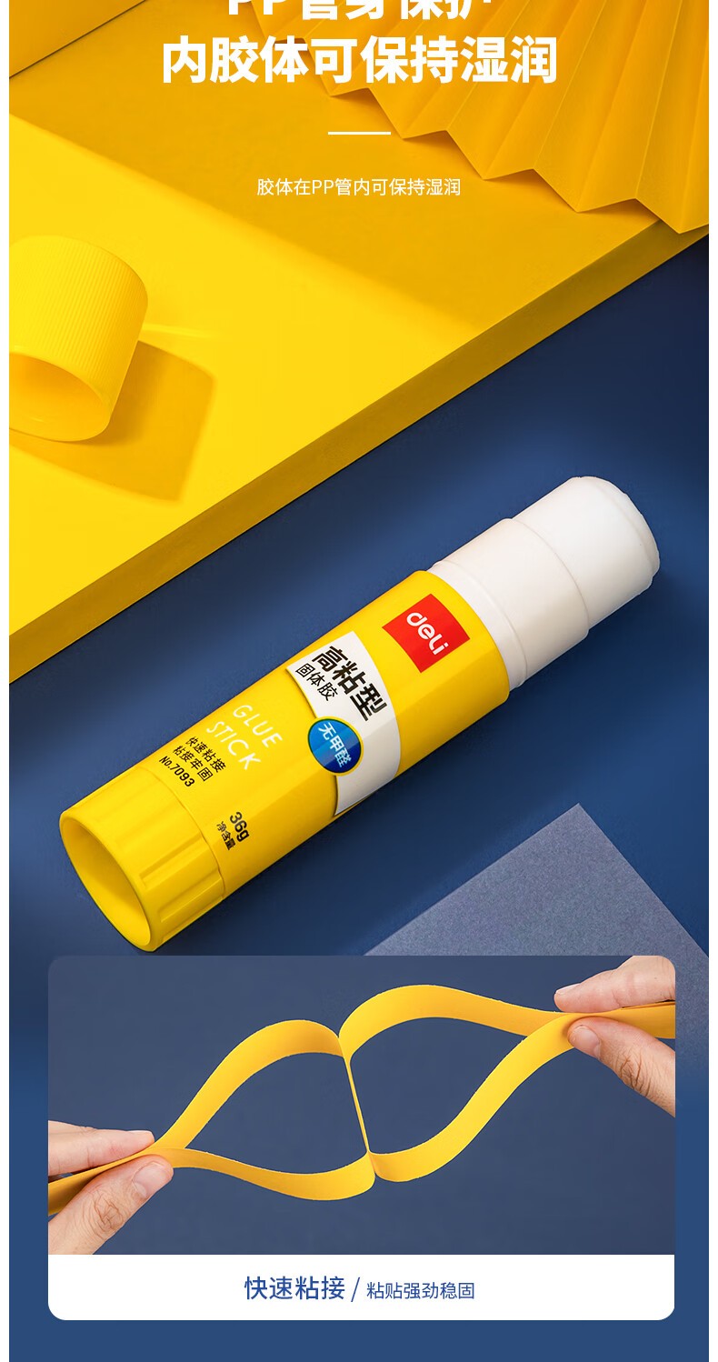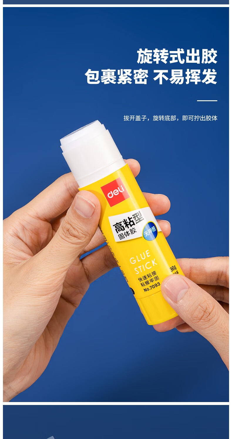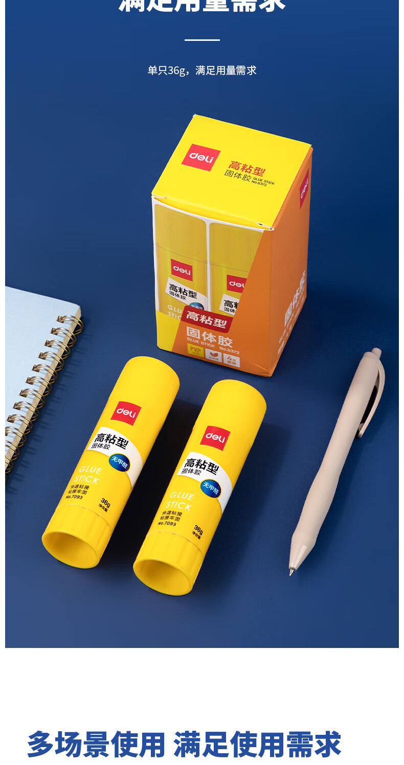 得力/deli 6372 胶棒/固体胶/胶水 36g高粘度PVP固体胶水 无甲醛快干耐用胶棒 强力粘接 学生文具 4支装