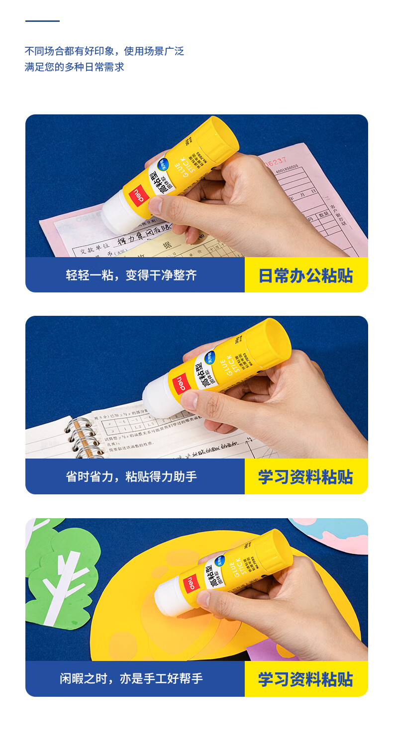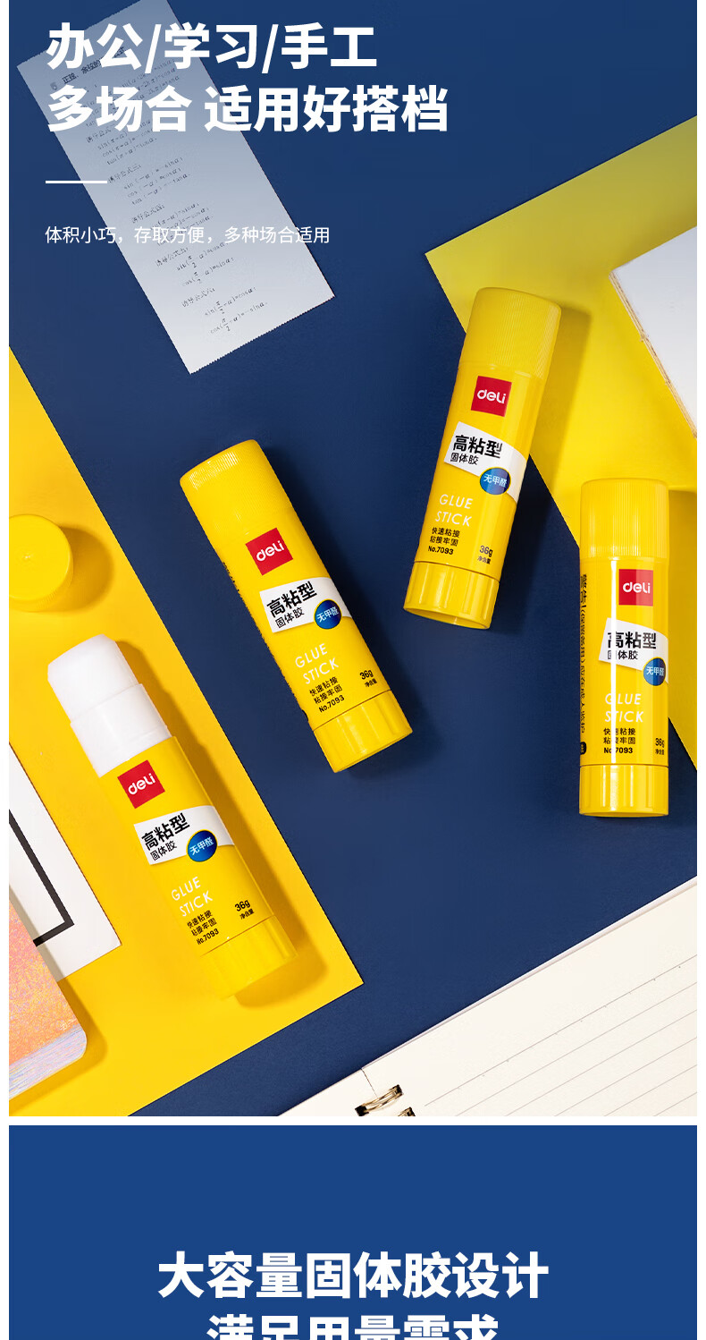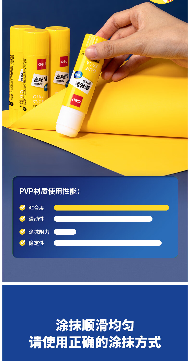 得力/deli 6372 胶棒/固体胶/胶水 36g高粘度PVP固体胶水 无甲醛快干耐用胶棒 强力粘接 学生文具 4支装