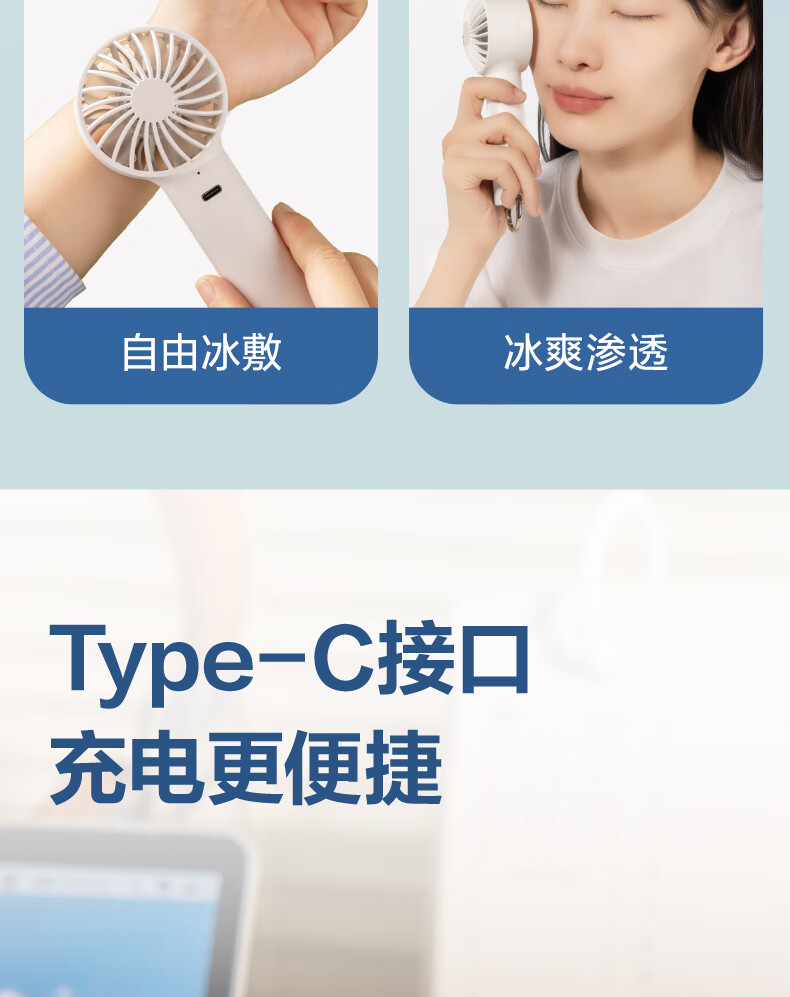 得力/deli LK105 风扇 手持冰敷风扇手持小风扇长续航风扇