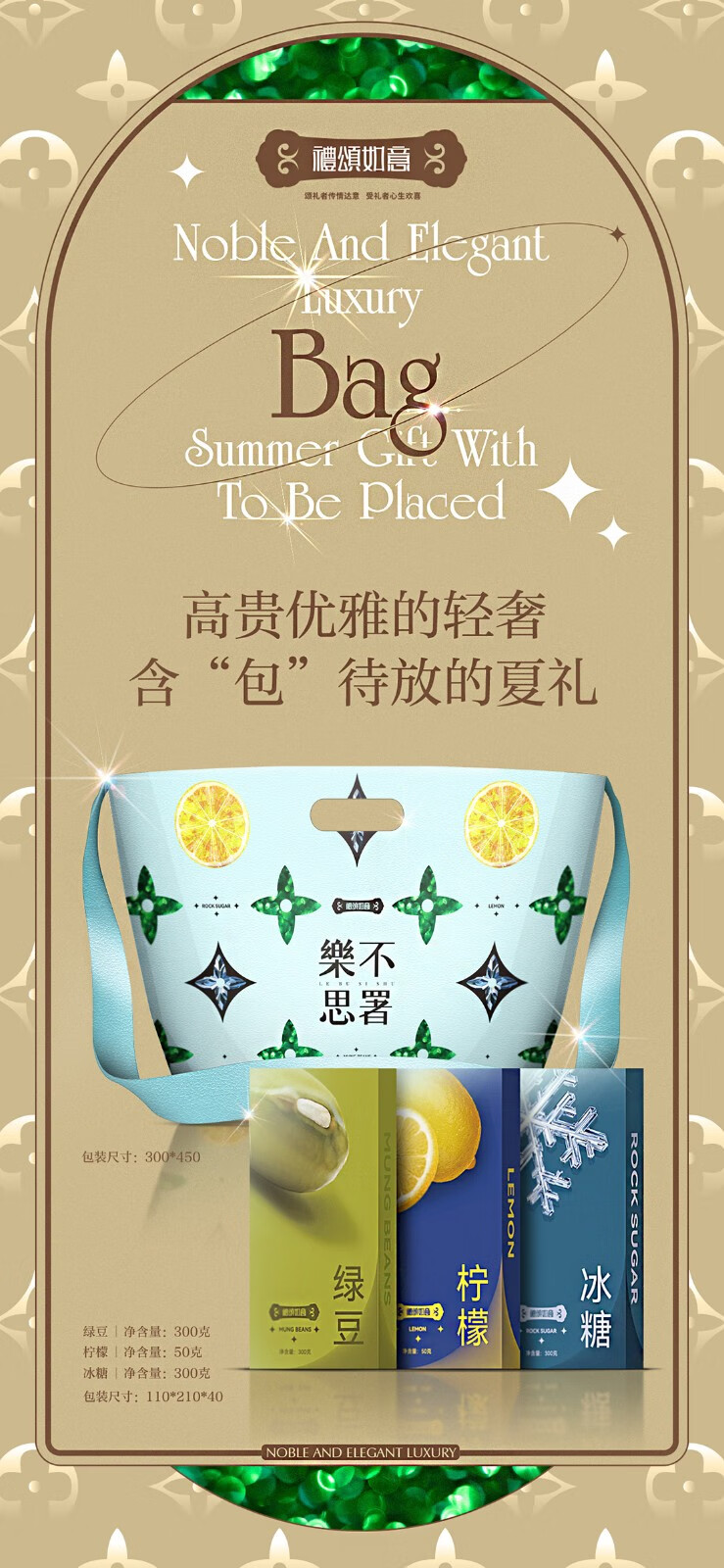 礼颂如意 650g绿豆 乐不思暑B款 冰糖柠檬绿豆礼袋装