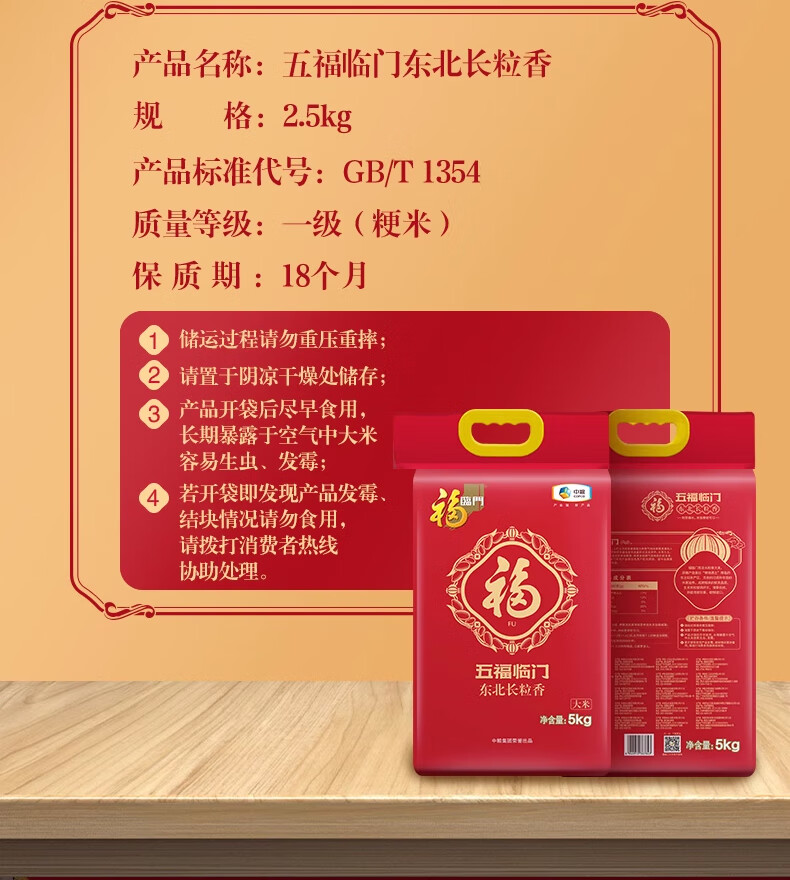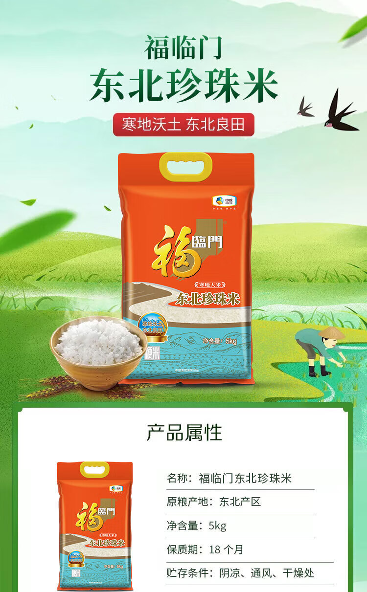 福临门 WFLM5 大米 中粮福临门五福临门东北长粒香米5kg
