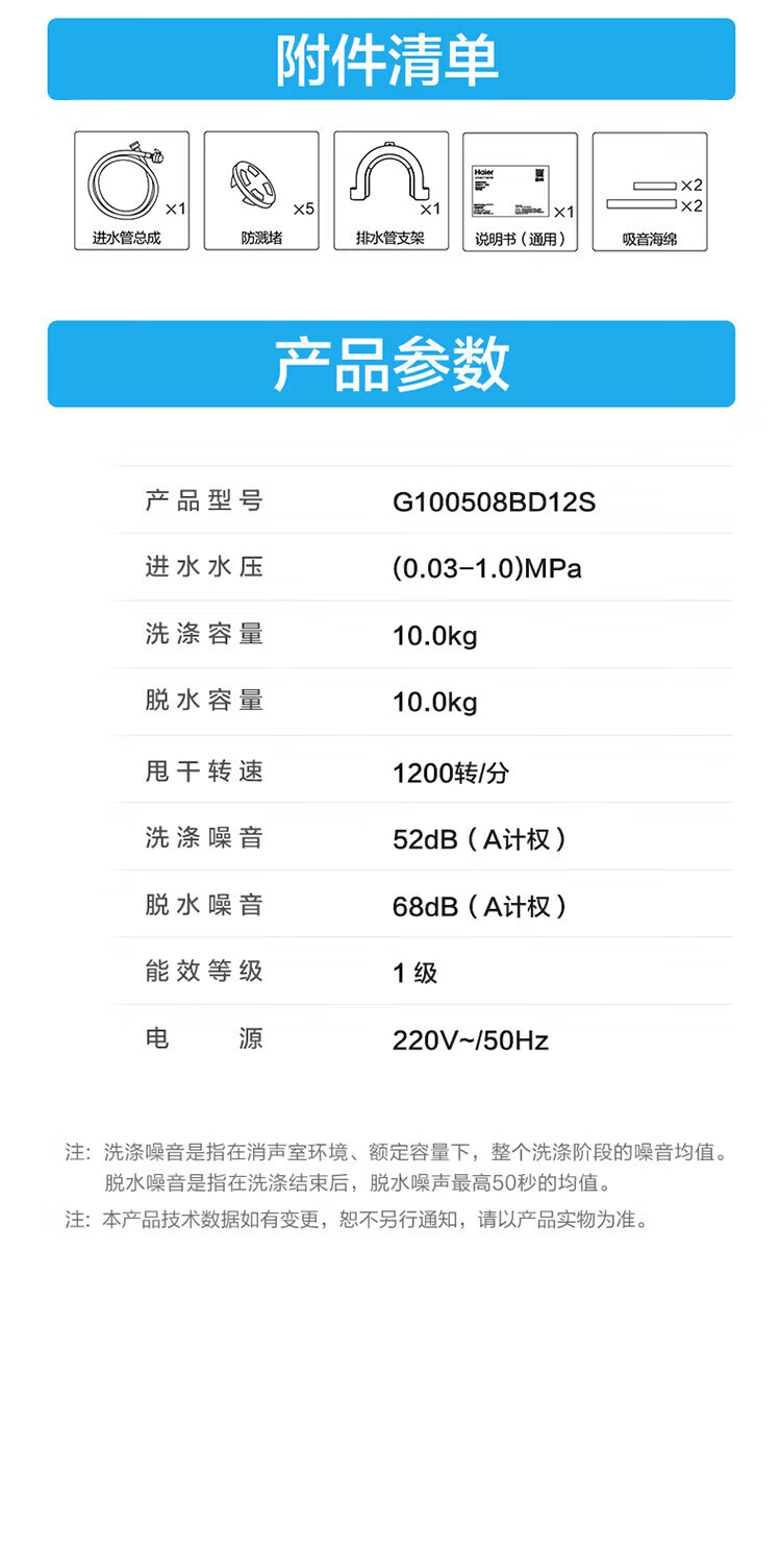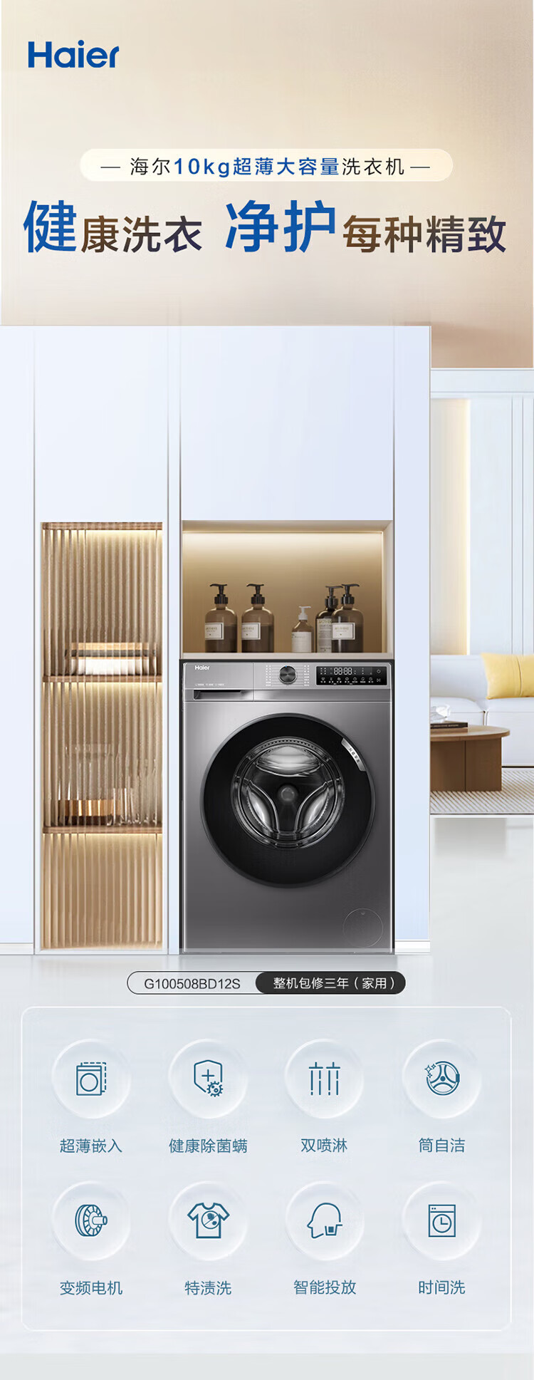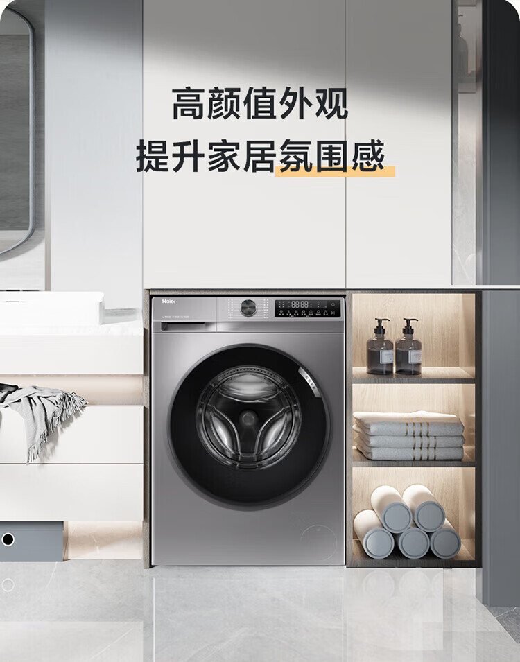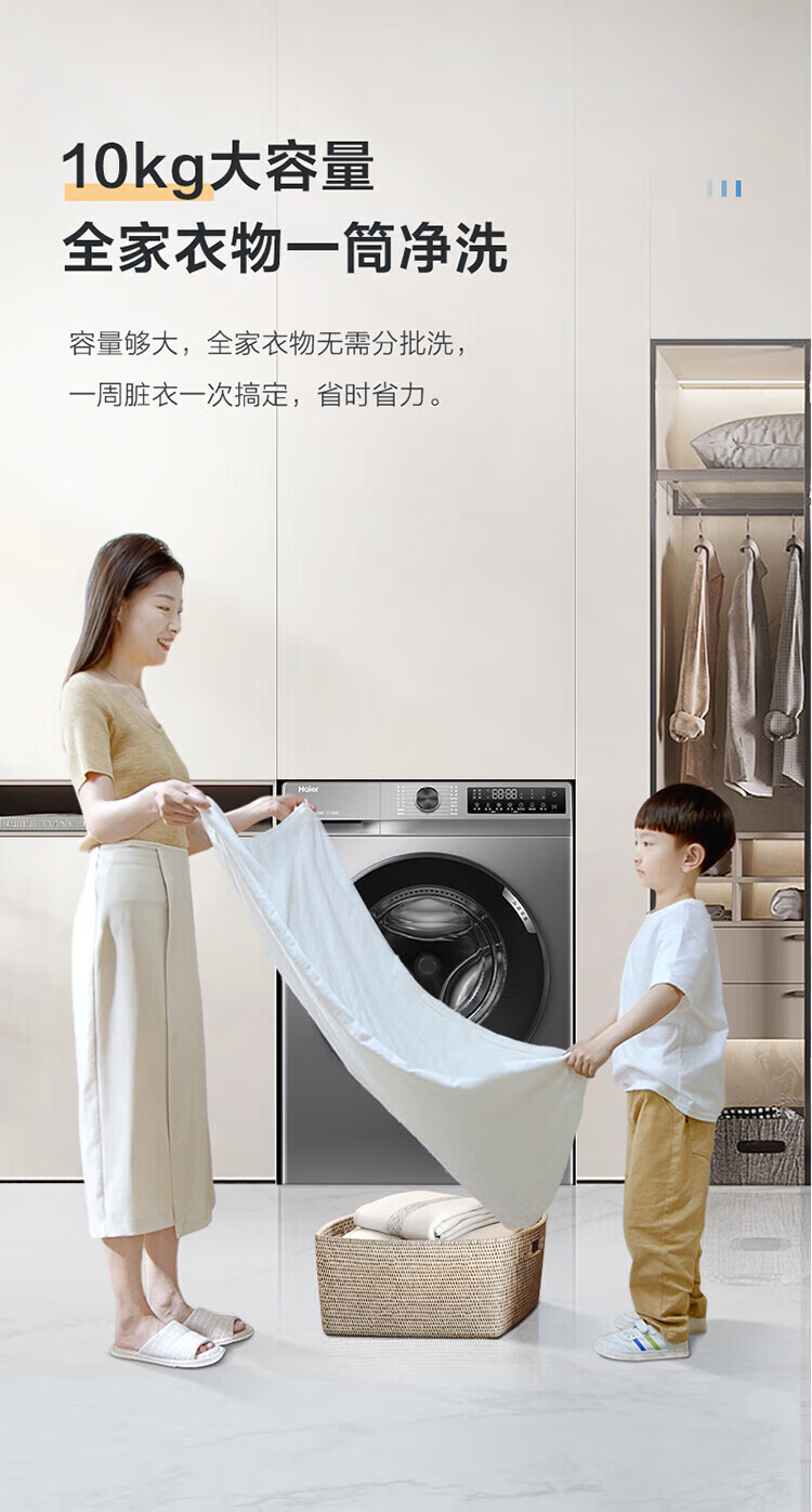 海尔/Haier G100508B12S 洗衣机 10KG滚筒洗衣机升级款大容量超薄1.1洗净比自清洁变频智能投放家用洗衣机