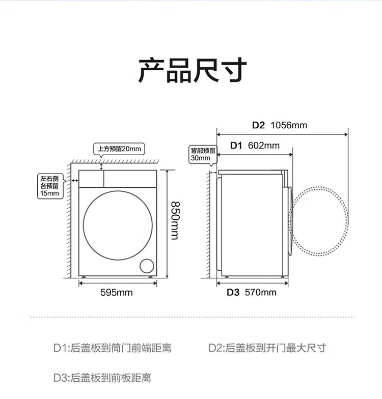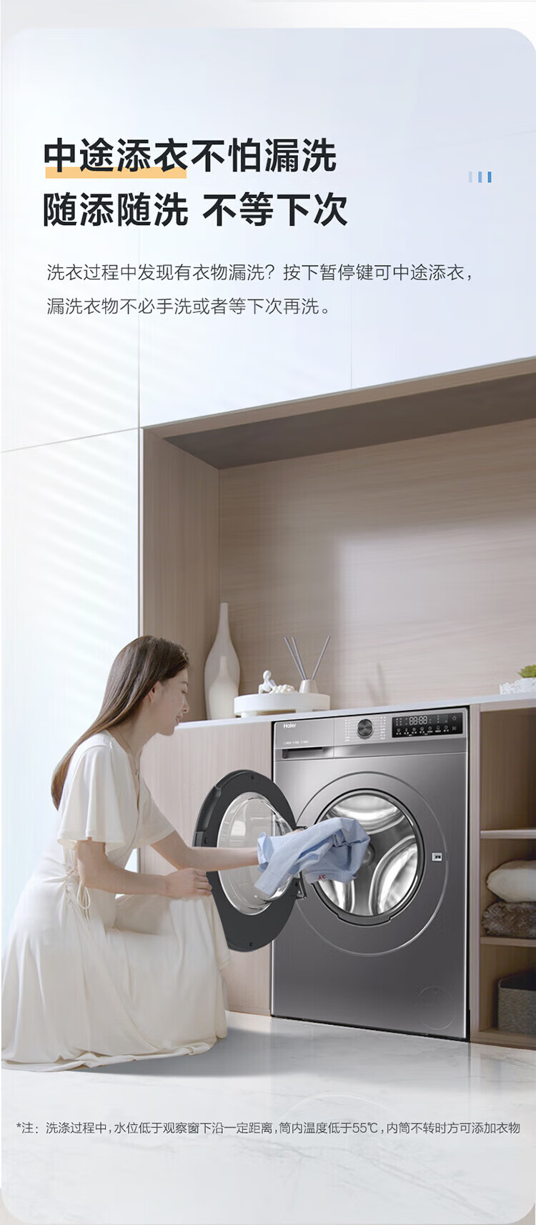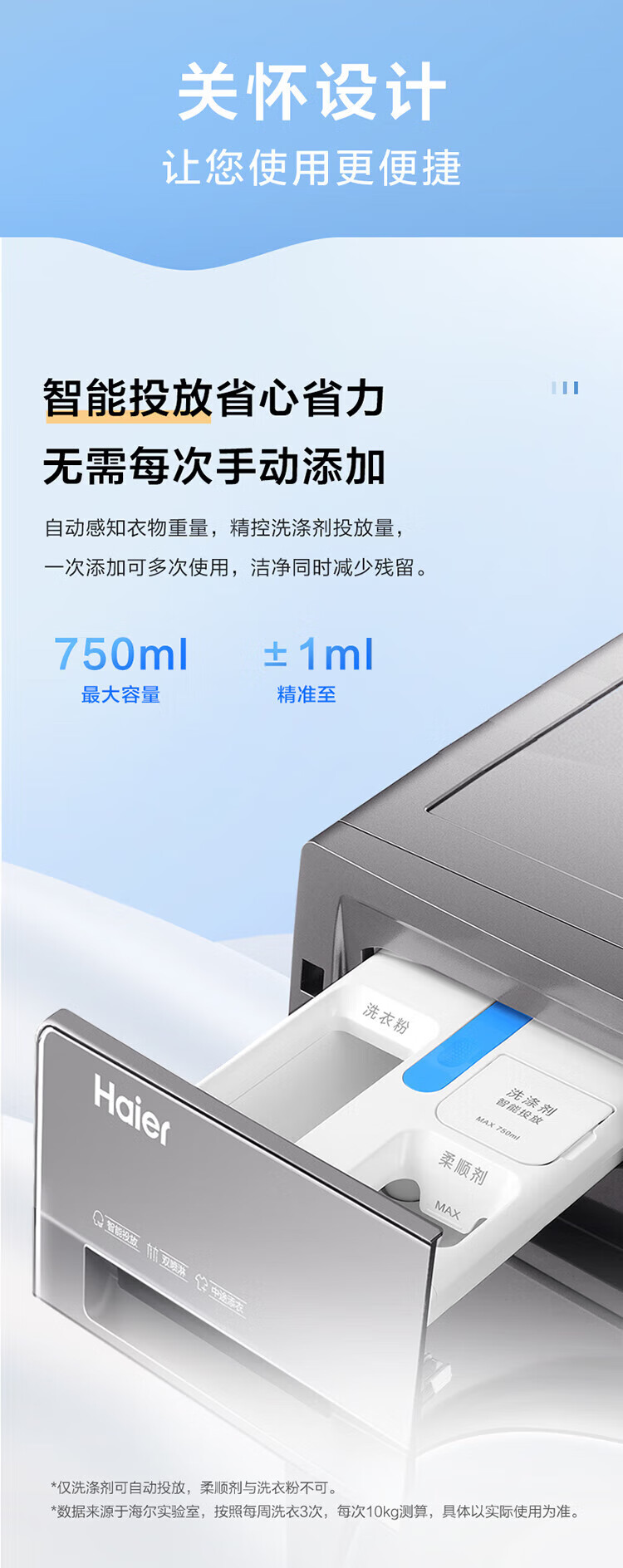 海尔/Haier G100508B12S 洗衣机 10KG滚筒洗衣机升级款大容量超薄1.1洗净比自清洁变频智能投放家用洗衣机