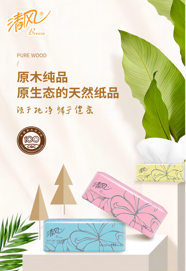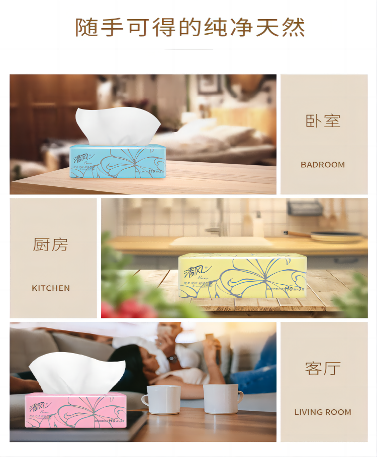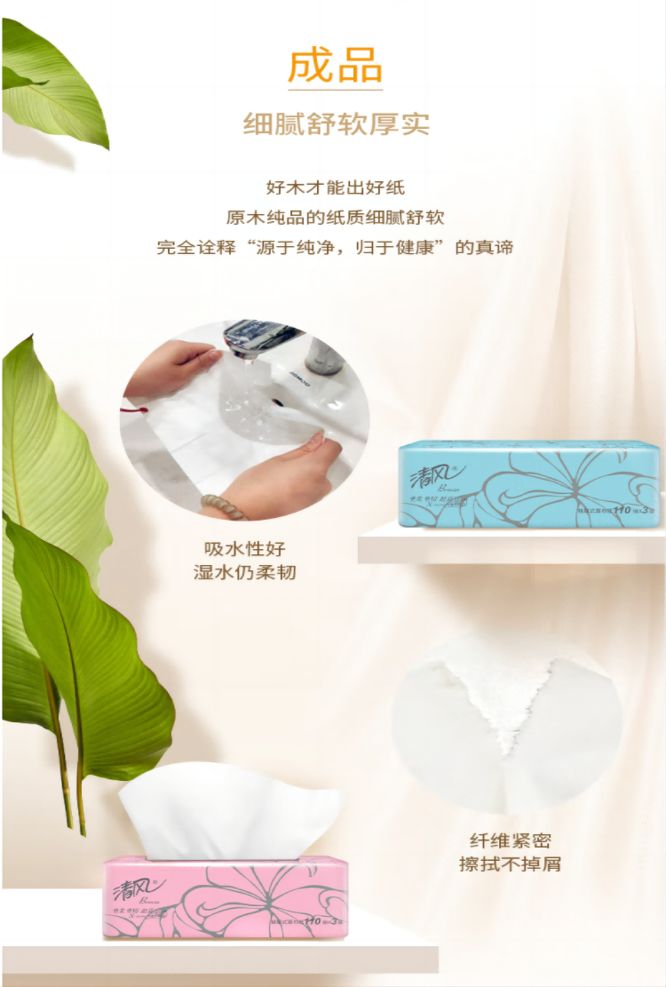 清风 AR33LS 软包抽取式面纸 质感系列抽纸24包(3层110抽)