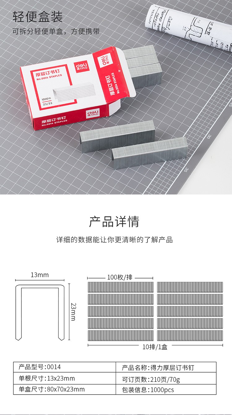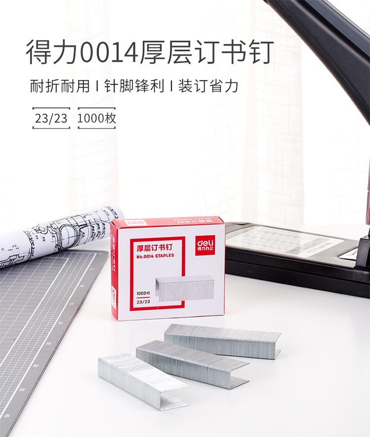 得力/deli 0014 装订及打孔类 23/23厚层订书钉 易穿透订书针 办公用品1000枚/盒