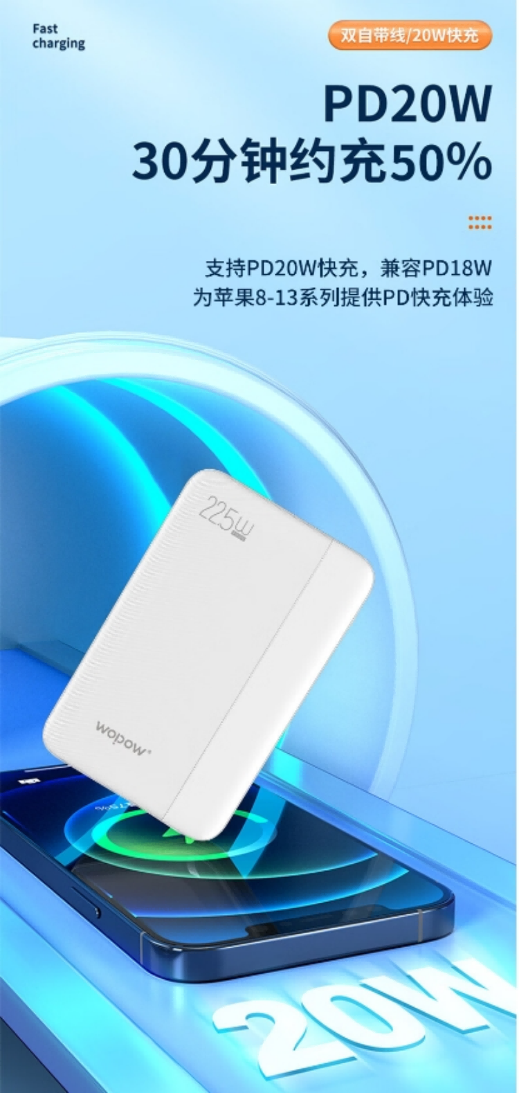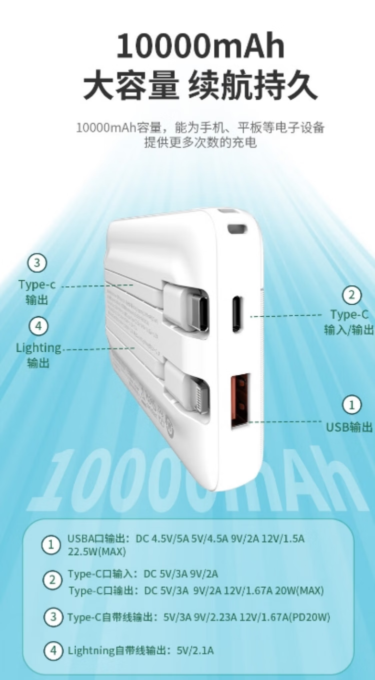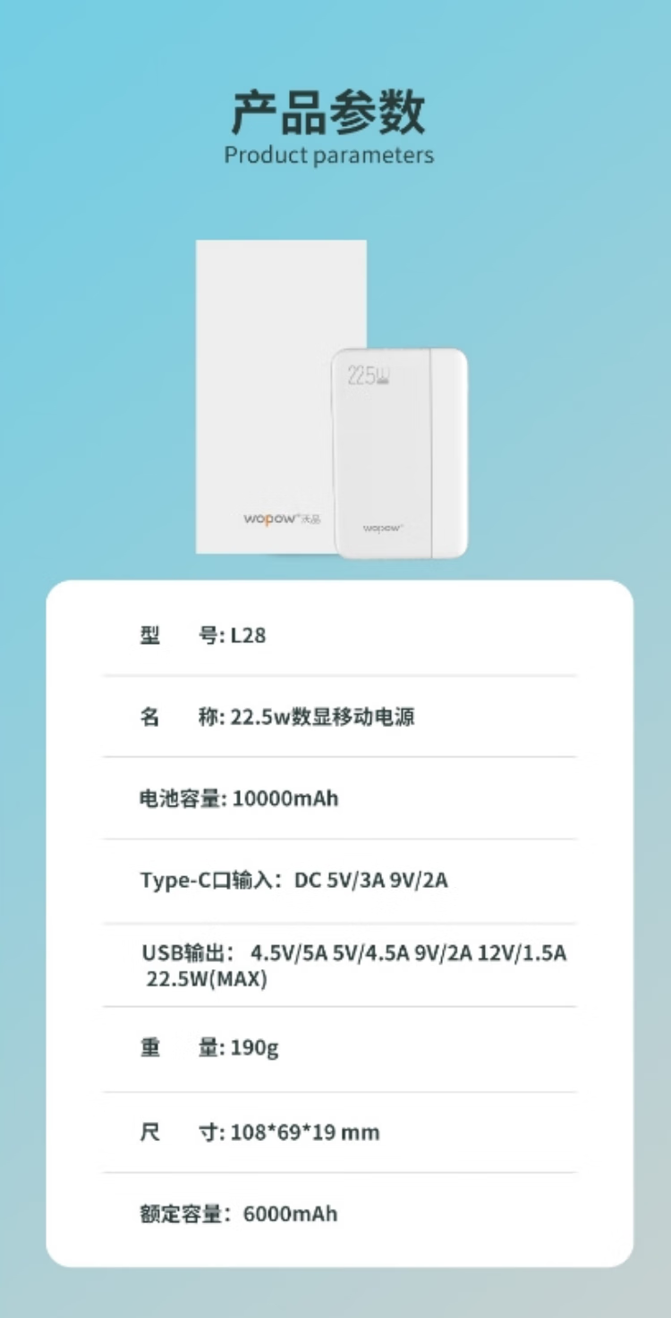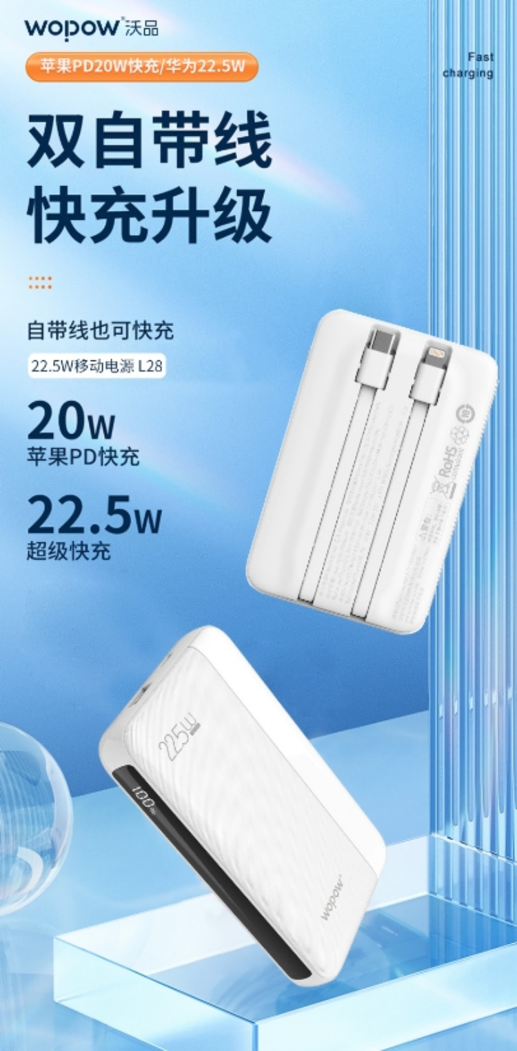 沃品/WOPOW L28 手机充电器 自带双线移动电源 白色 (单位:个)
