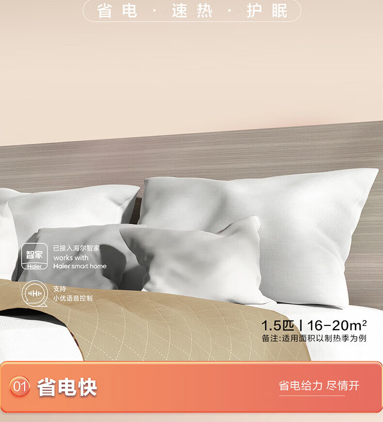 海尔/Haier KFR-35GW/B1KDA81U1 壁挂式空调 1.5匹 一级能效 静悦机皇+舒适静眠