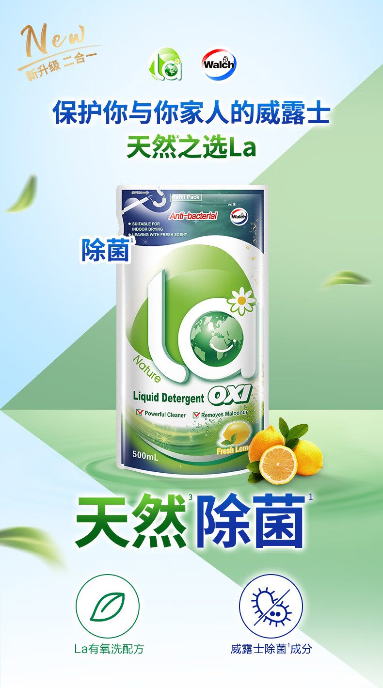 威露士/Walch CJ1L 洗衣液/洗衣粉 威露士除菌有氧洗衣液原味1L