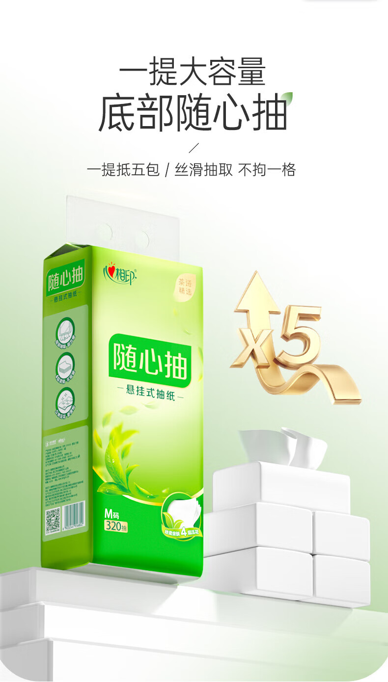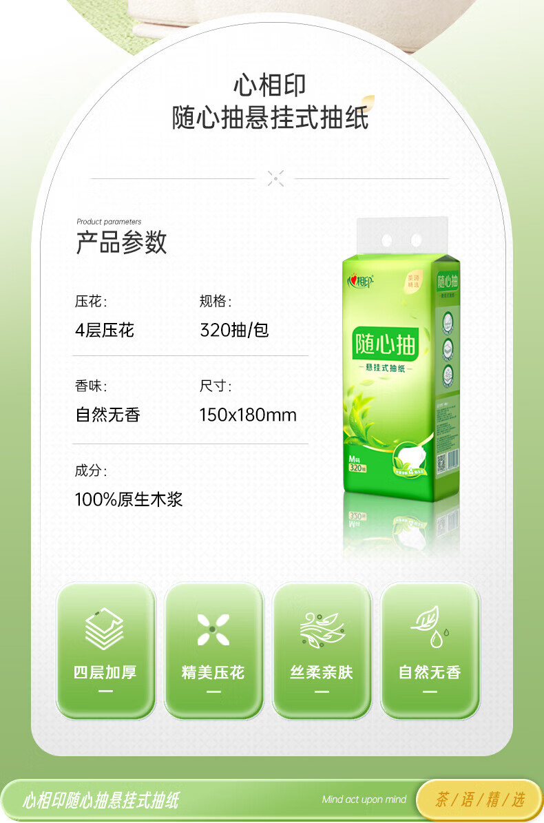 心相印/MindActUponMind 2DT10320 软包抽取式面纸 抽随心抽4层/2提