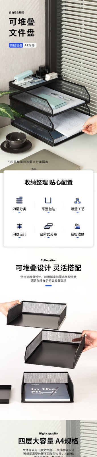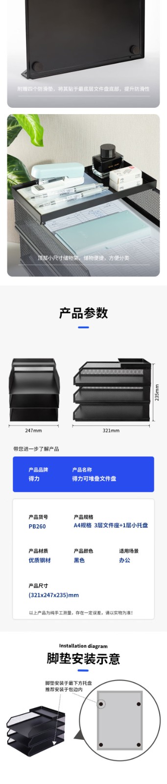 得力/deli PB260 文件筐 可堆叠金属文件框栏文件篮
