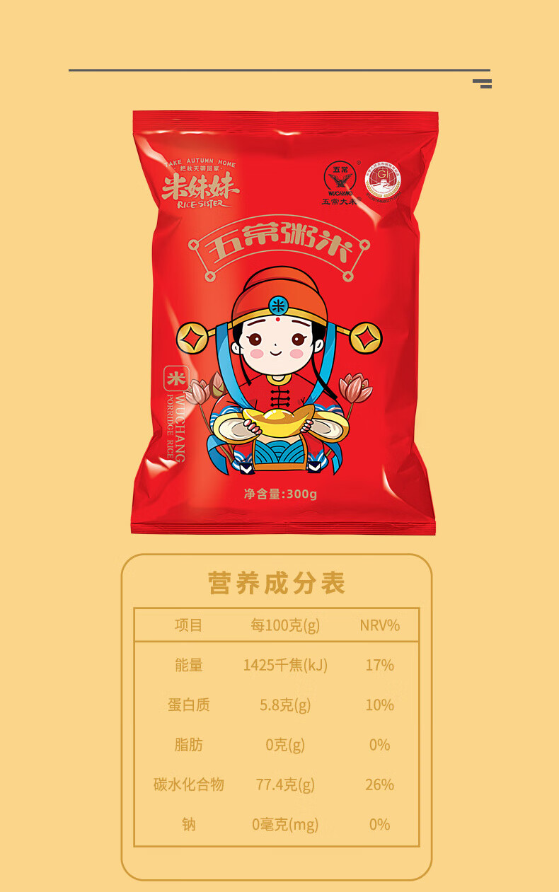 米妹妹/MIMEIMEI M056 大米 米妹妹五常粥米袋装300g