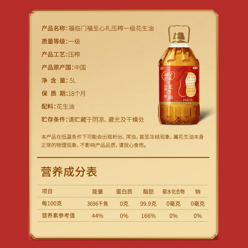 福临门 FZXL5 花生油 中粮福临门福至心礼压榨一级花生油