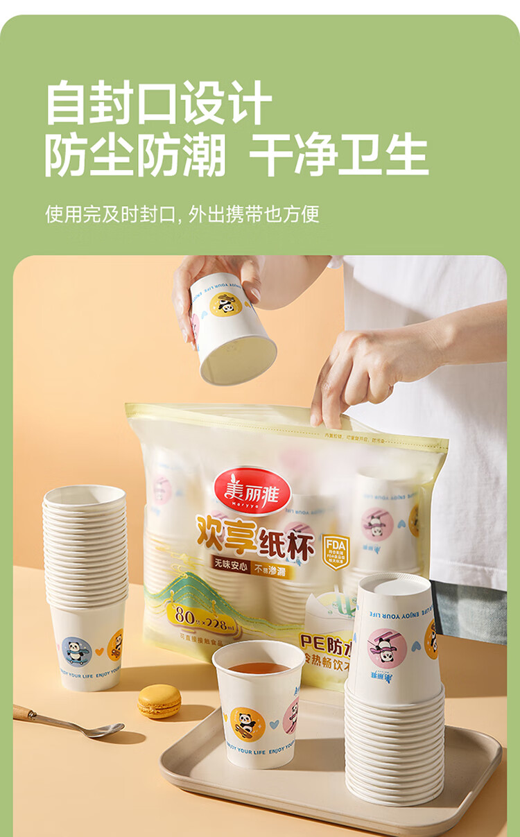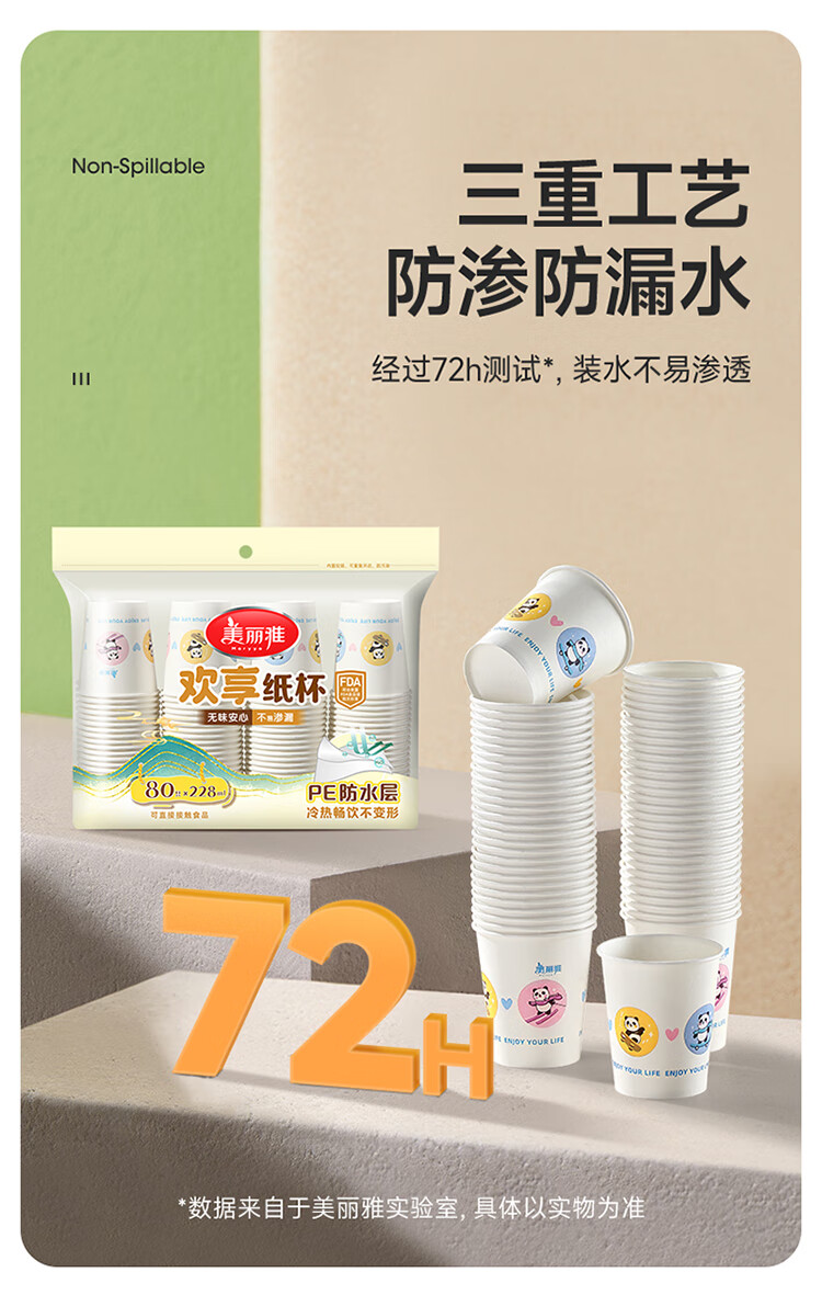 美丽雅 228ml*80一次性杯子 加厚228ml*80只 办公商务家用饮料果汁茶水杯