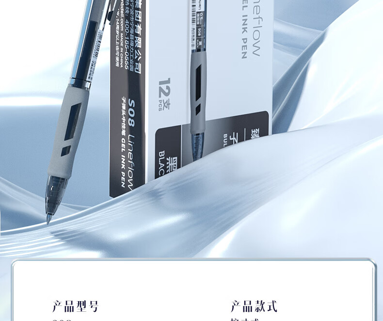 得力/deli S08 书写用笔类用具 子弹头按动笔水笔 办公用品 黑色 12只/盒 单只