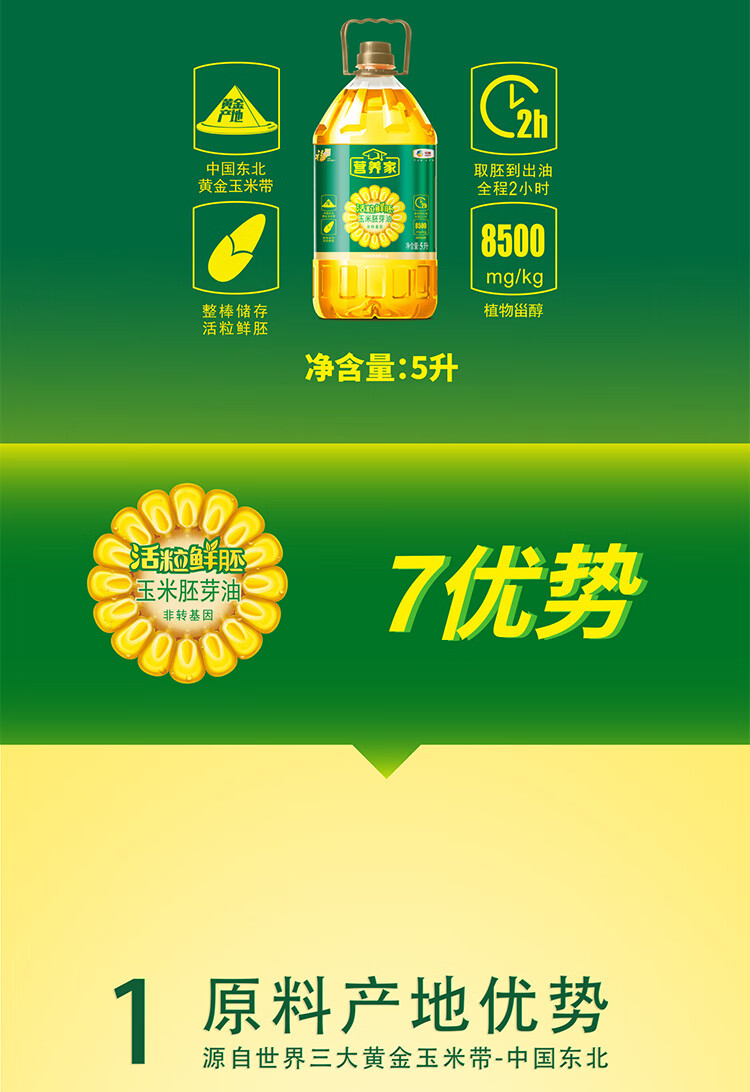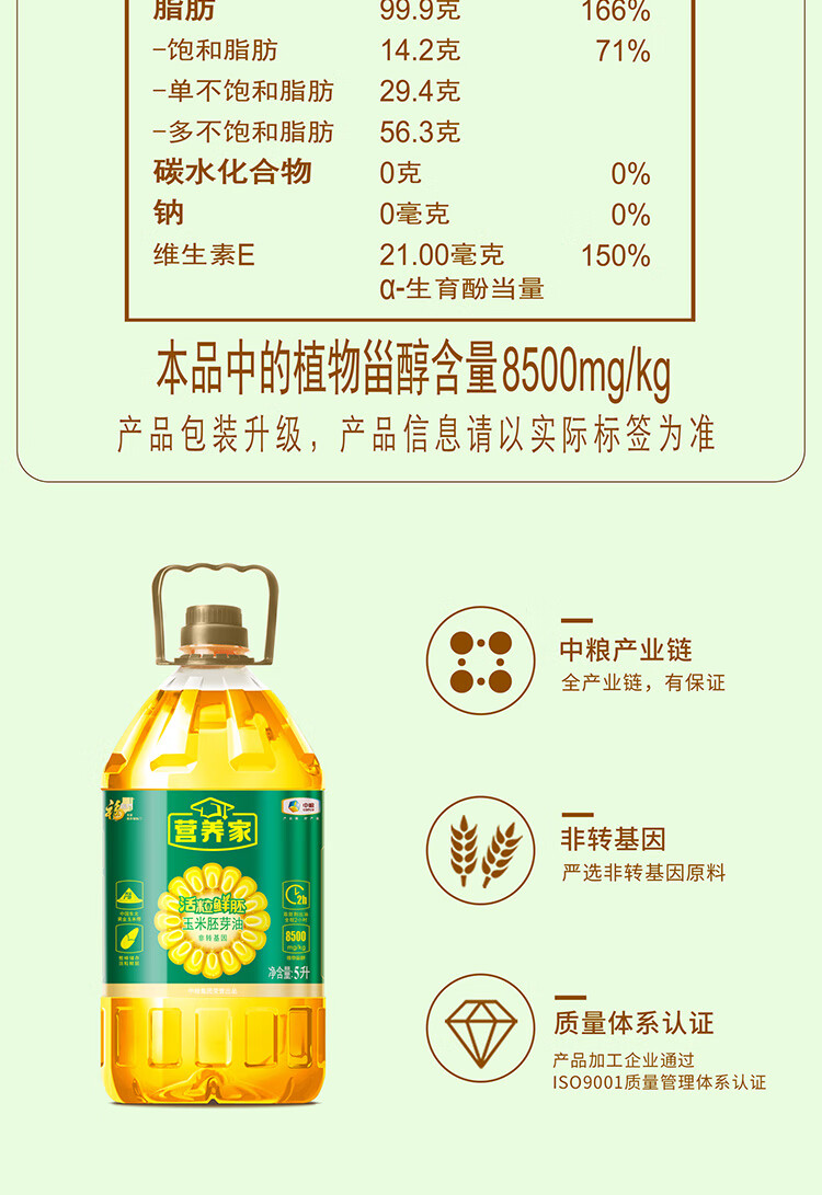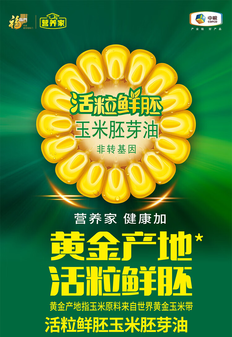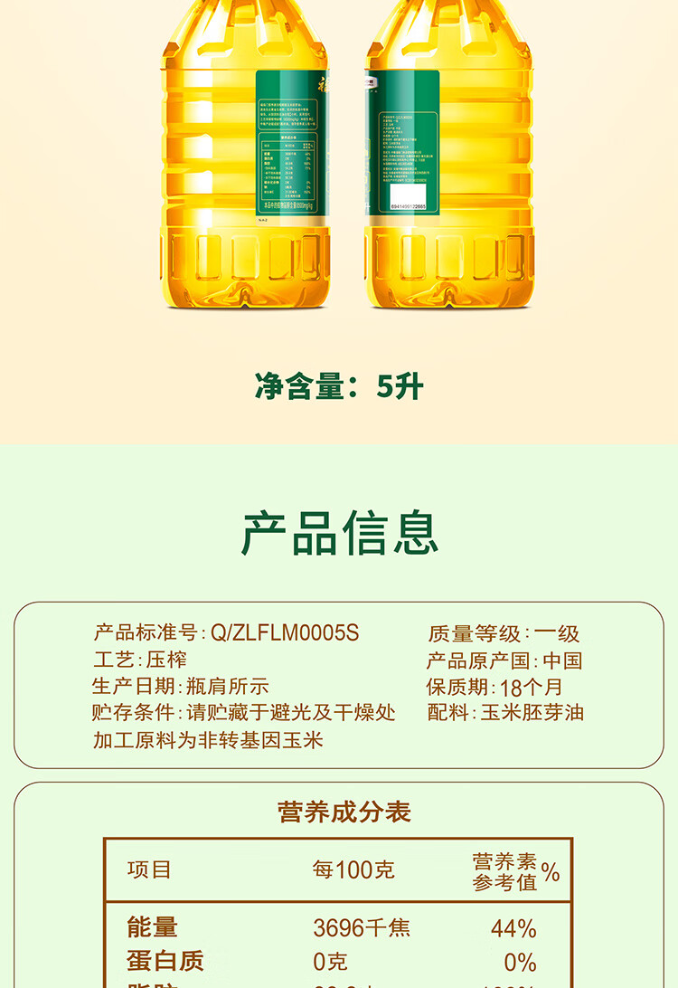 福临门 YYYM5 玉米油 中粮福临门营养家活粒鲜胚玉米胚芽油5L