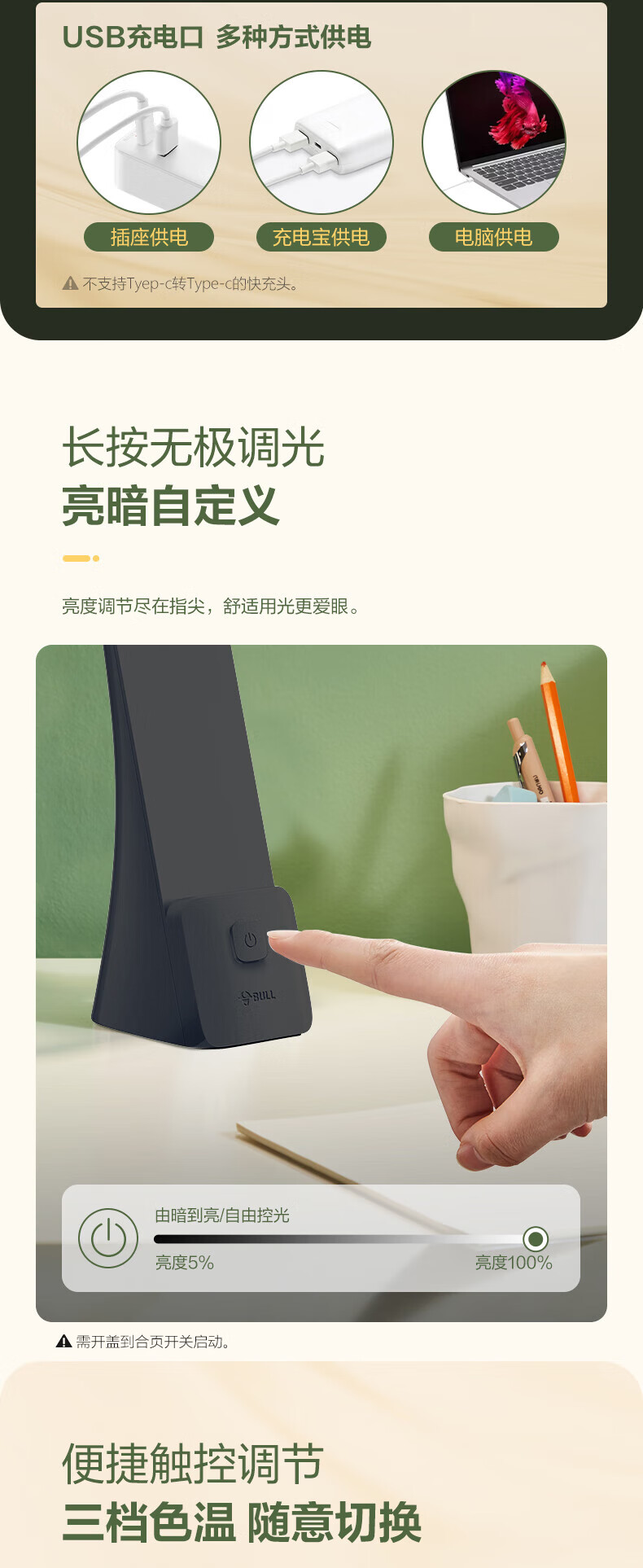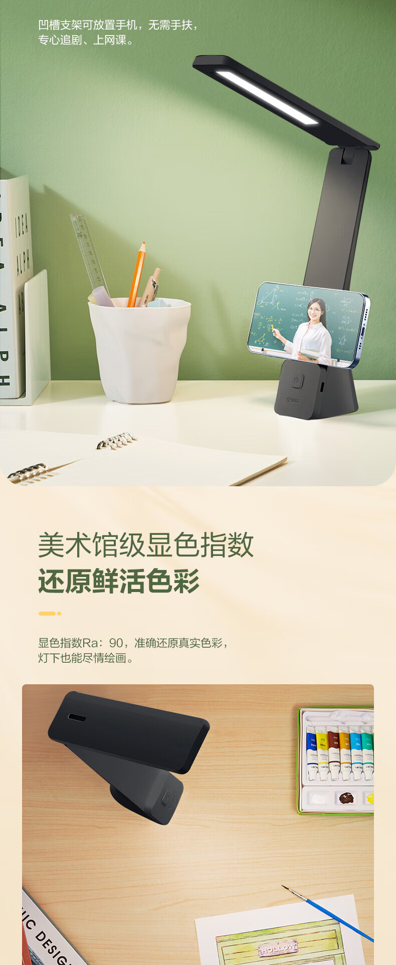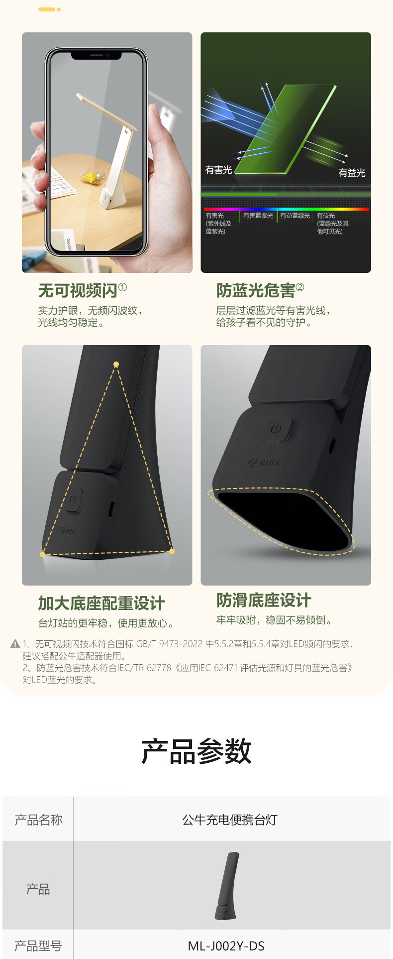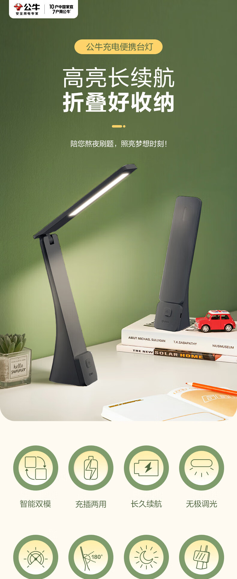 公牛/BULL ML-J002Y-DS台灯/壁灯/床头灯/落地灯 护眼充电台灯折叠台灯
