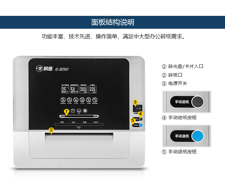 科密/Comet G-3250 碎纸机 25张/次 中大型连续碎 大容量 大吞吐(50分钟 45L 密码锁 碎光盘 卡)