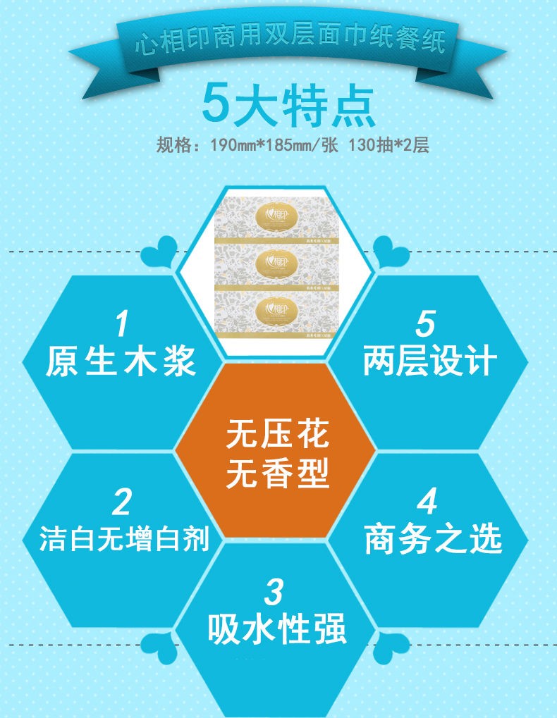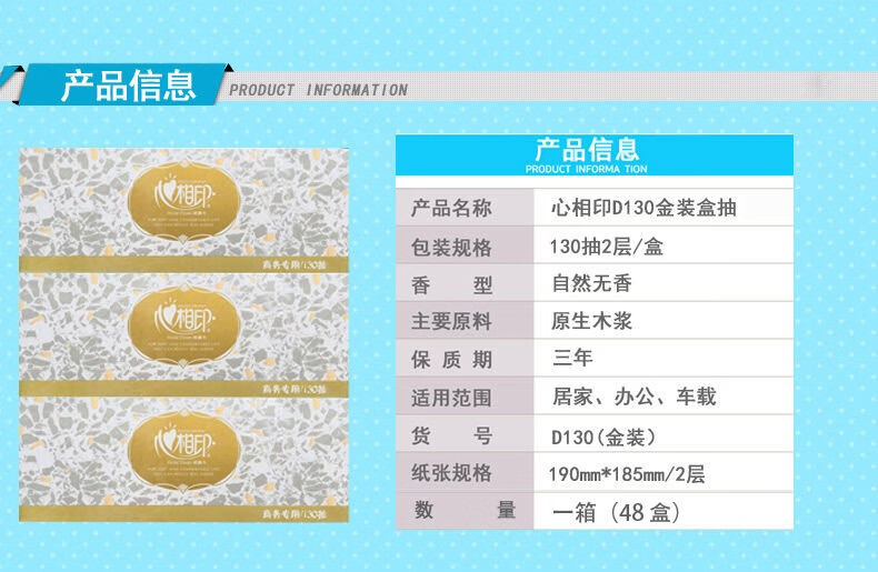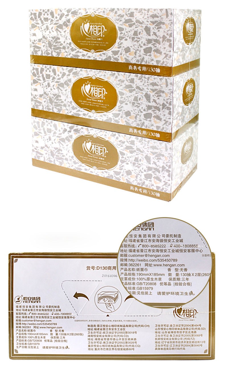 心相印/MindActUponMind D130 盒装抽取式面纸 130抽酒店宾馆商务专用 48盒/箱