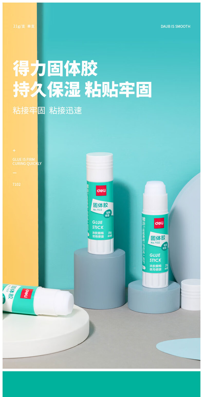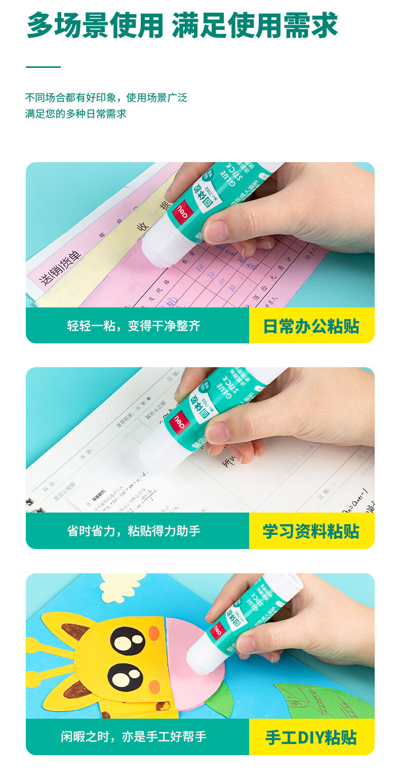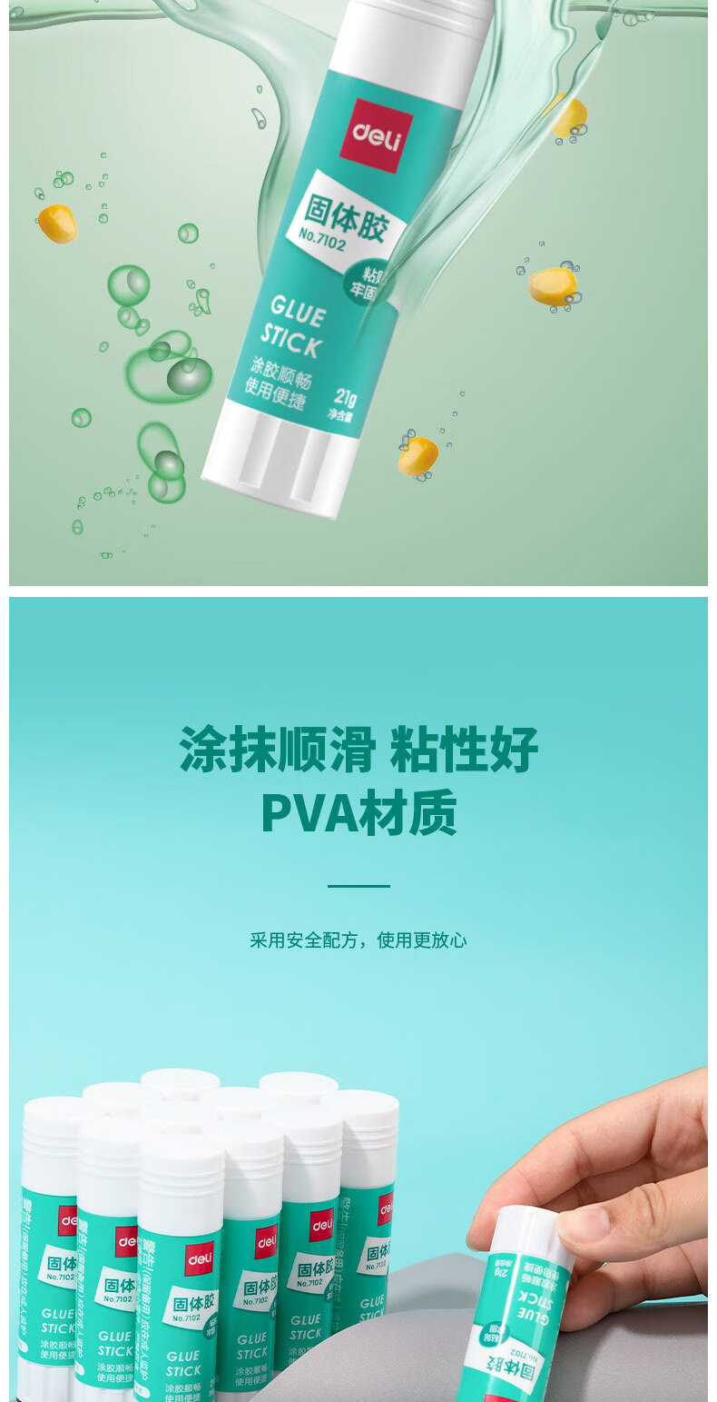 得力/deli P07102 胶棒/固体胶/胶水21gPVA固体胶水 速干可水洗胶棒 DIY手工粘胶学生文具 12支/盒