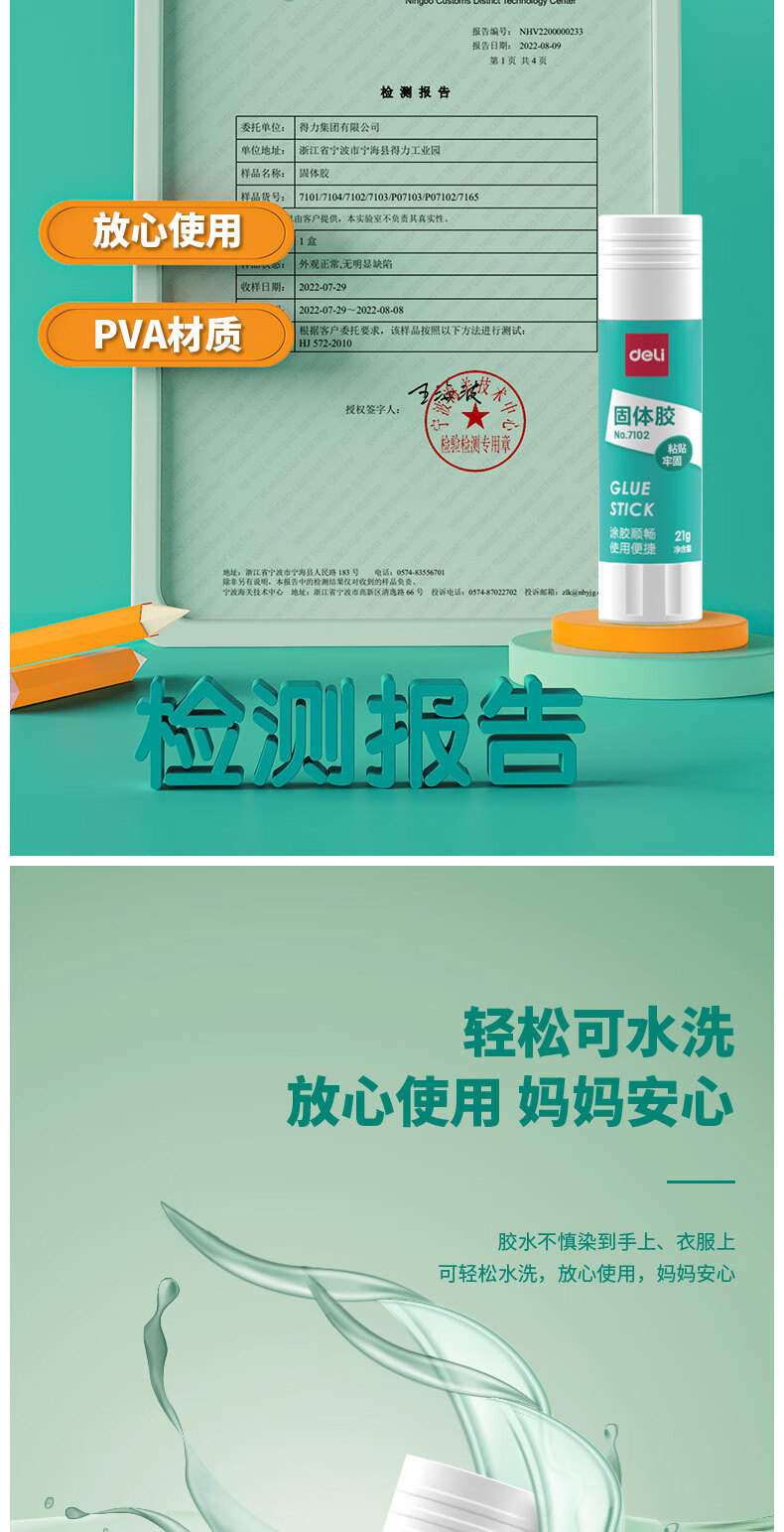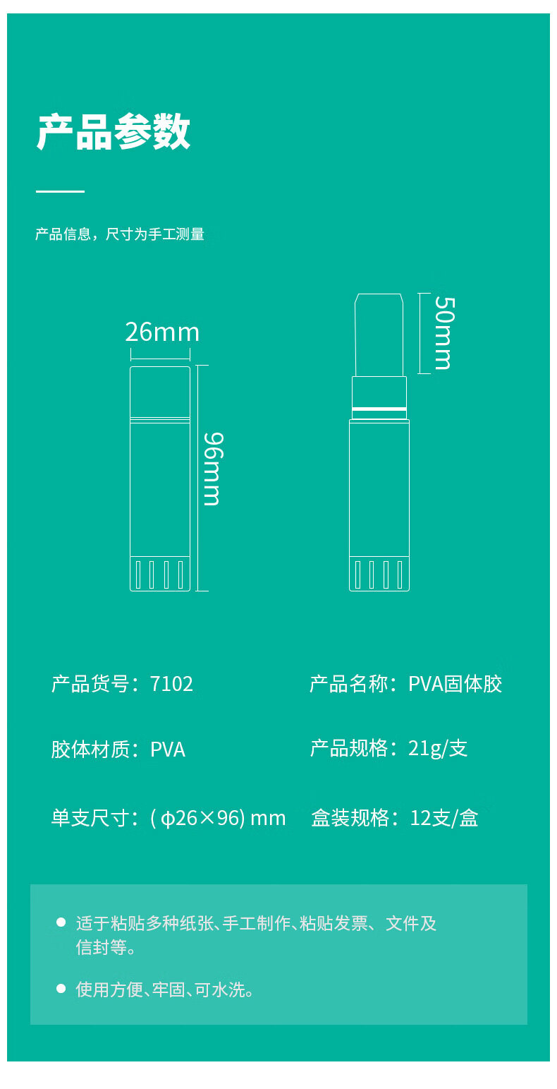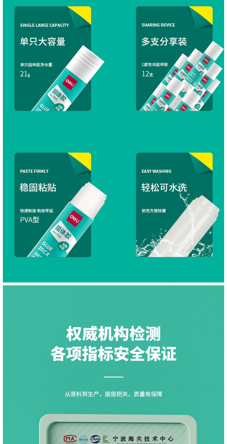 得力/deli P07102 胶棒/固体胶/胶水21gPVA固体胶水 速干可水洗胶棒 DIY手工粘胶学生文具 12支/盒