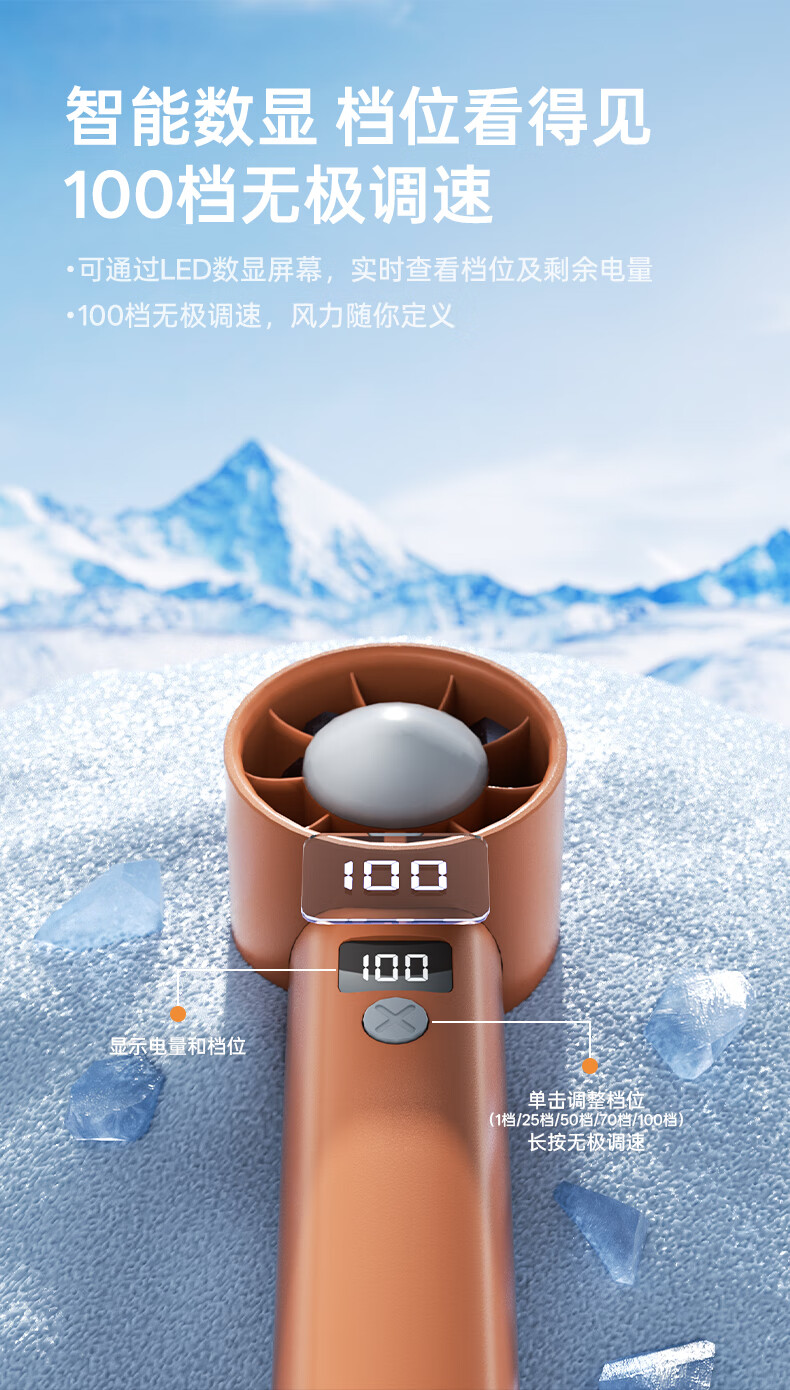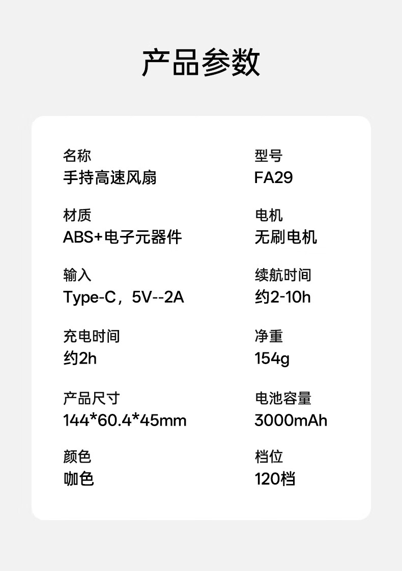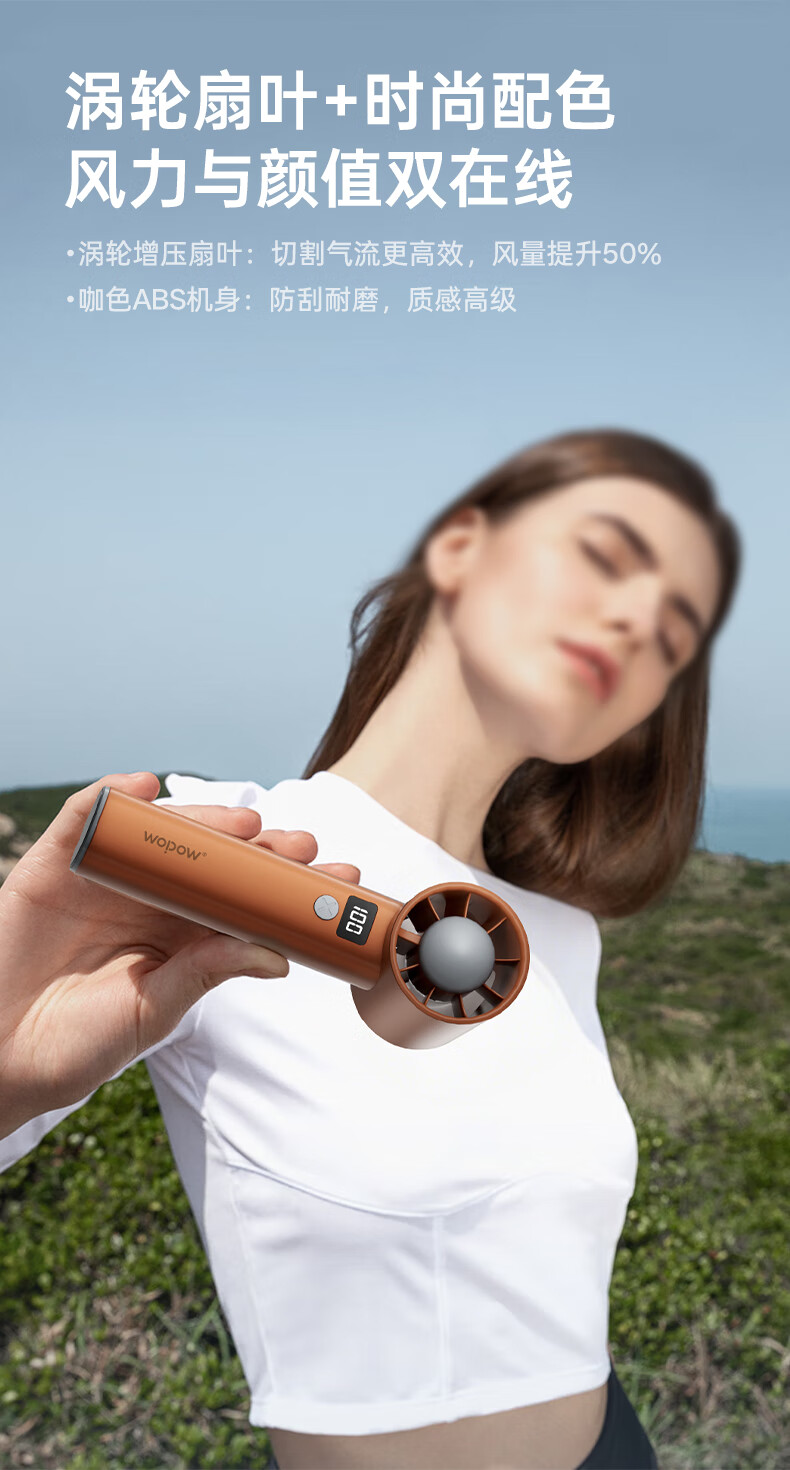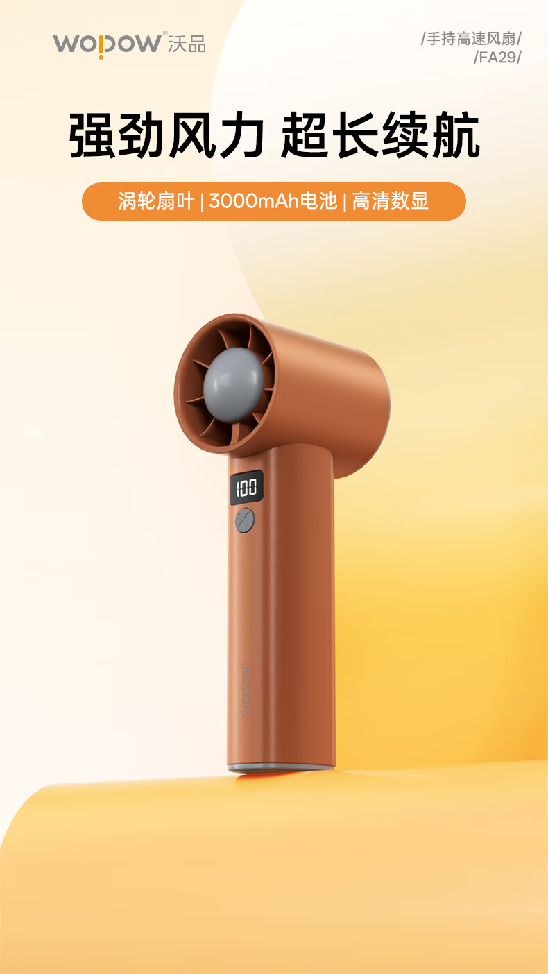 沃品/WOPOW FA29 风扇 手持便携充电小风扇迷你静音大风力手持高速风扇FA29 咖色 3000mAh